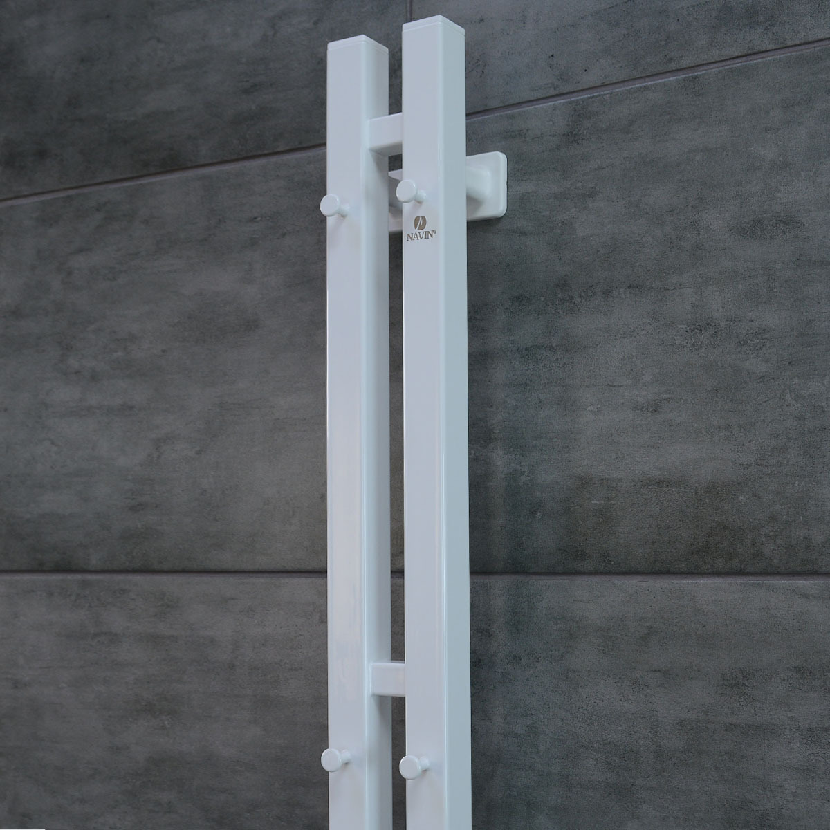 Электрический полотенцесушитель Силуэт Квадро 90х1500 Sensor, цвет — белый, от украинского производителя NAVIN, изготовлен из углеродистой стали, которая отличается высоким качеством и прочностью. Модель имеет порошковое покрытие. Толщина стенки стоек и перемычек полотенцесушителя составляет 1,5 мм.