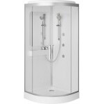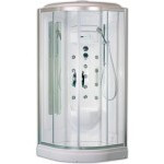 Гидромассажные кабины по размеру не отличаются от уголков: 90х90, 100х100, 120х80 см – самые распространенные варианты. Отличие от кабин без гидромассажа в наличии поддона и функциональности, а также в том, что материалом дверей всегда является закаленное стекло. Его безопасность обусловлена высокой прочностью на удар, толщиной от 4 до 8 мм и особой структурой: при ударе такое стекло не трескается на ранящие осколки, а распадается на сегменты по принципу автомобильного. При выборе обратите внимание на следующее:
