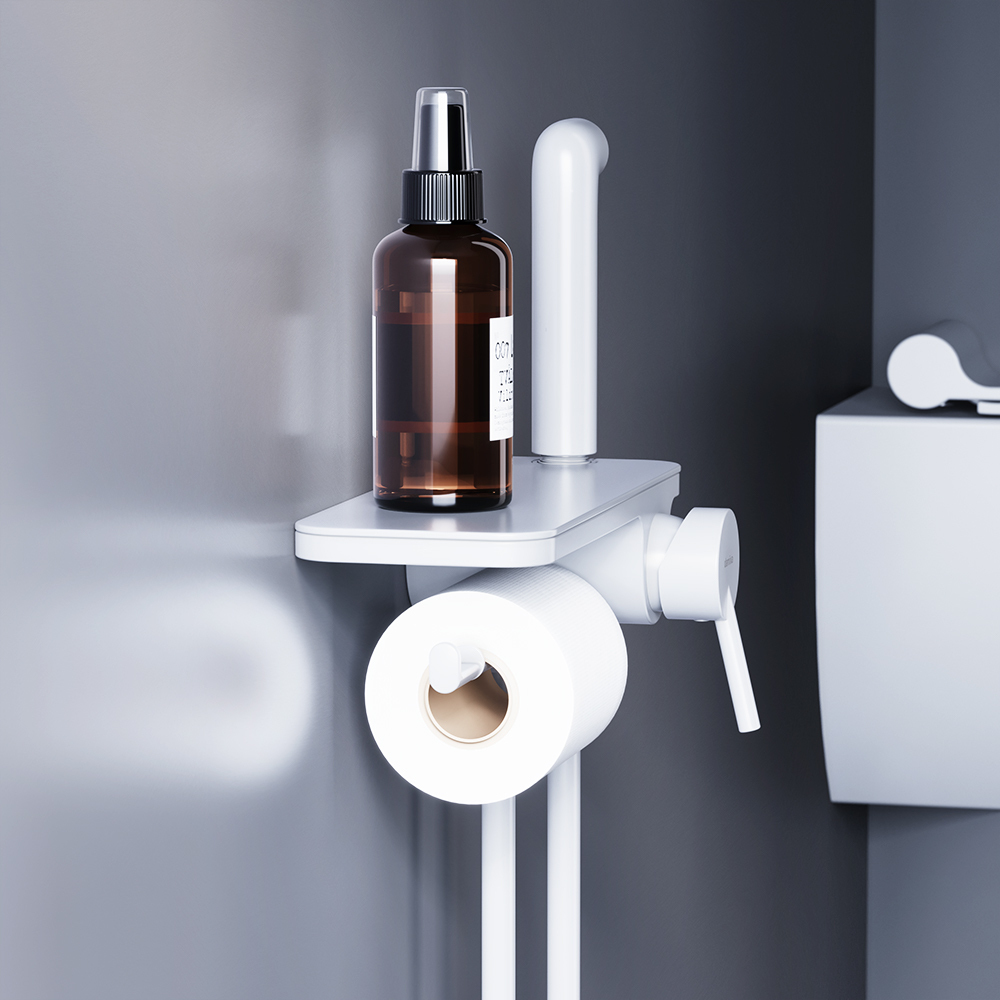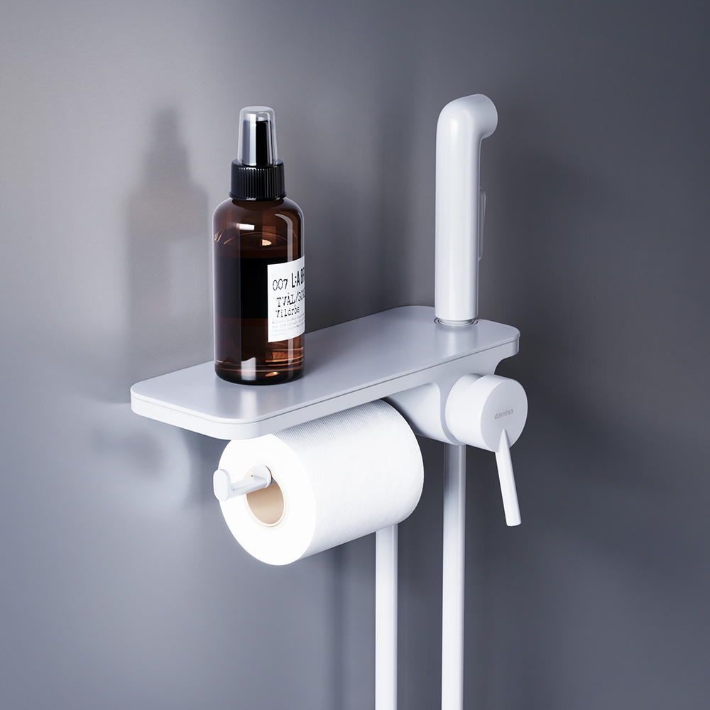 Современное решение для вашего удобства и гигиены теперь в новом исполнении: смеситель с гигиеническим душем отличается простотой и комфортом в использовании а еще он выглядит невероятно стильно в новом белом цвете. Самое практичное гигиеническое решение: смеситель оснащен удобной полочкой на которой поместится все что необходимо под рукой и держателем для туалетной бумаги. Смеситель с гигиеническим душем имеет компактный размер и монтируется непосредственно в стену что помогает установить его даже в небольших санузлах.Смеситель оборудован ручкой-стиком которая удобно ложится в руку и гарантирует комфортное использование гигиенического душа. Керамический картридж Light Flow обеспечивает плавное управление ручкой смесителя и оптимальную регулировку температуры и мощности потока.