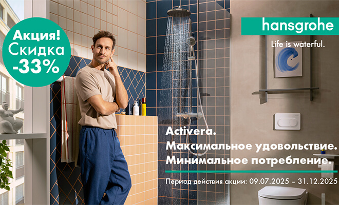 Таким образом, Activera предлагает максимальное удовольствие при минимальном потреблении. Гибкий ограничитель расхода ограничивает потребление воды, чему также способствуют эффективные технологии hansgrohe EcoSmart и EcoSmart+.
