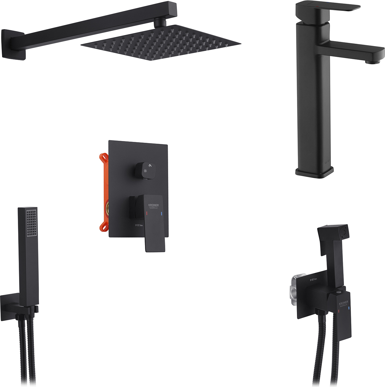 Душевая система Kroner KRP Edelstahl Kubus SCH082 (Kubus-SCH082, черная матовая, скрытого монтажа)