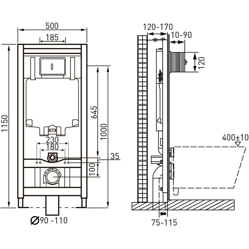 - Инсталляция Volle Master - 141515 (c звукоизоляционной прокладкой, с креплением к стене)
