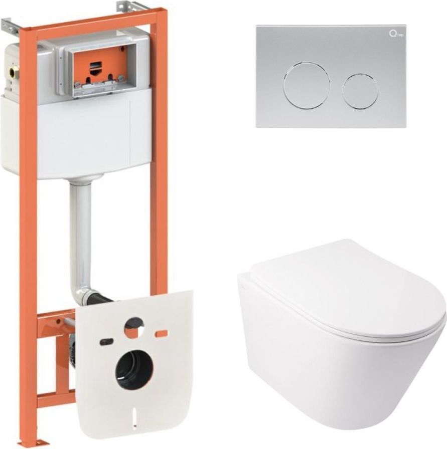Комплект: Qtap Swan Ultra Quiet унитаз подвесной QT16335179W + Nest комплект инсталляции 4в1 (круглая клавиша Satin) QT0133M425 + M11111SAT