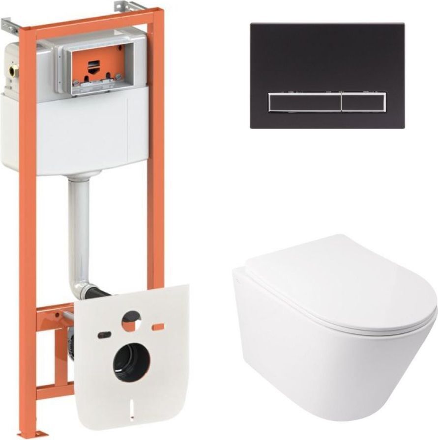 Комплект: Qtap Swan Ultra Quiet унитаз подвесной QT16335179W + Nest комплект инсталляции 4в1 (линейная клавиша Black mat) QT0133M425 + M08V1091MB