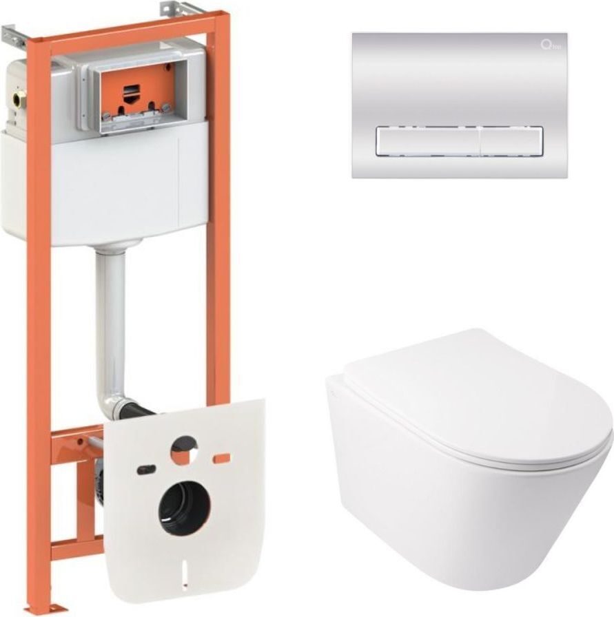 Комплект: Qtap Swan Ultra Quiet унитаз подвесной QT16335179W + Nest комплект инсталляции 4в1 (линейная клавиша Chrome) QT0133M425 + M08381CRM