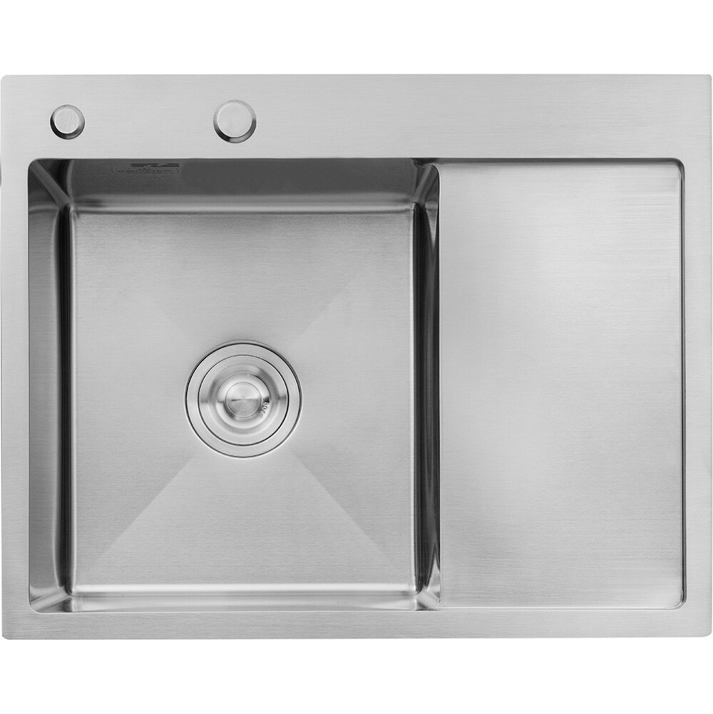Кухонная мойка Kroner KRP Gebürstet - 6350LHM (3.0/1.0 мм) изготовлена из высококачественной нержавеющей стали пищевой марки, что позволит изделию прослужит долгие годы. Отменное качество и дизайн мойки позволят удовлетворить самые высокие требования и создать уют в вашем доме! Выпуск сифона изготовлен из нержавеющей стали с мусоросборником в форме ведерка и закрывается пробкой-крышкой, которую можно использовать при необходимости набрать воды в чашу. Мойка оборудована переливом для отвода води в экстренных случаях. Интегрированный способ монтажа позволяет устанавливать мойку в любом возможном варианте, классическом врезном - над столешней, интегрированом - мойка устанавливается в уровень со столешней, и монтаж под столешню.
