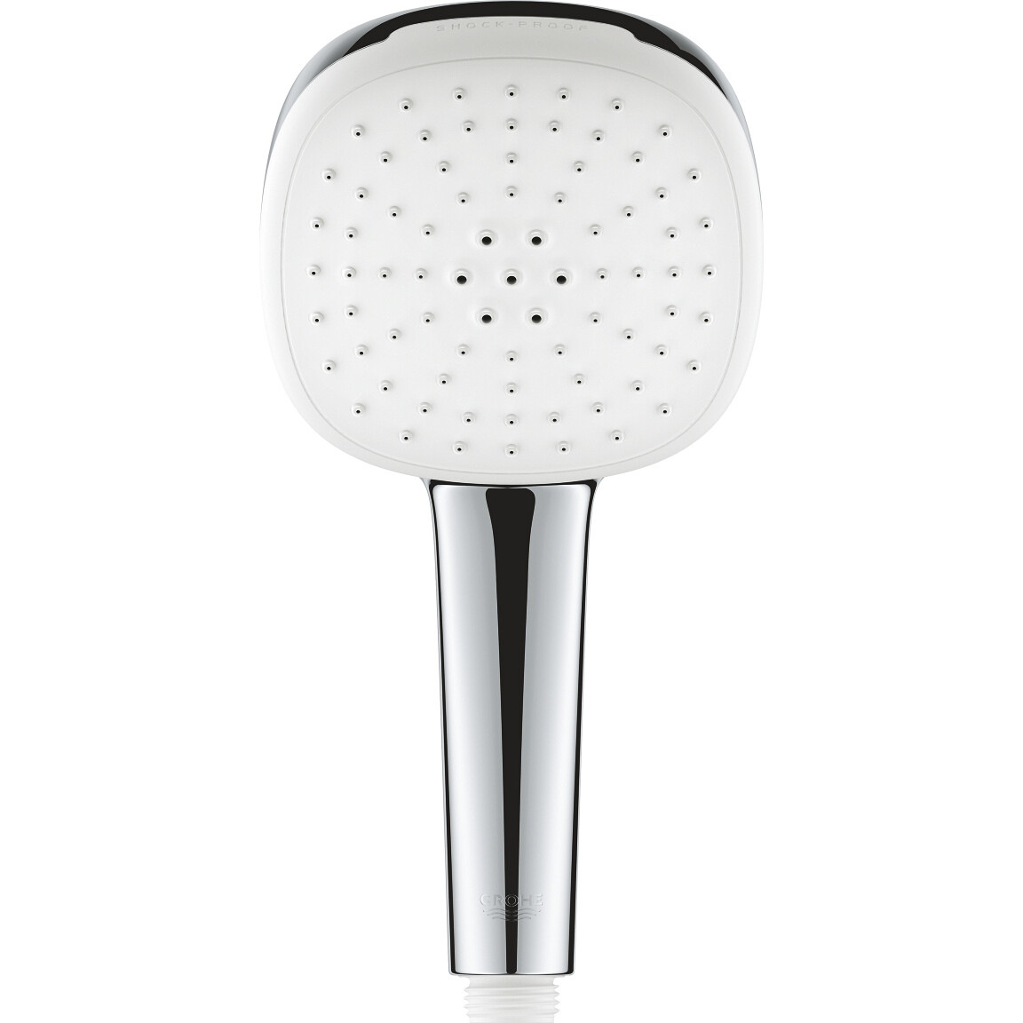 Продуманный и компактный ручной душ GROHE Tempesta Cube 110 - это простой способ преобразить вашу душевую процедуру. Его 110-миллиметровая лейка оснащена 2 струями, которые соответствуют вашему настроению: успокаивающая Rain или мощная Jet с помощью простого в использовании переключателя SmartSwitch на задней панели. Технология GROHE DreamSpray гарантирует, что поток воды из каждой форсунки будет одинаковым, обеспечивая идеально сбалансированную форму струи. Силиконовое кольцо ShockProof предотвращает повреждение самого ручного душа, а также душевого поддона или ванны при падении. Его безупречный внешний вид и первоклассные характеристики прослужат долгие годы - душ оснащен силиконовыми форсунками GROHE SpeedClean, которые можно очистить от накипи и грязи одним движением пальца, а покрытие GROHE Long-Life является износостойким и легко очищается, обеспечивая долговечность и ослепительность поверхности. Кроме того, он экономичен в расходе воды благодаря ограничителю расхода GROHE Water Saving, который значительно снижает потребление воды без ущерба для производительности. Рекомендуется давление не менее 1,0 бар. Универсальная система крепления подходит ко всем стандартным душевым шлангам, поэтому вам нужно только прикрутить душевой шланг.