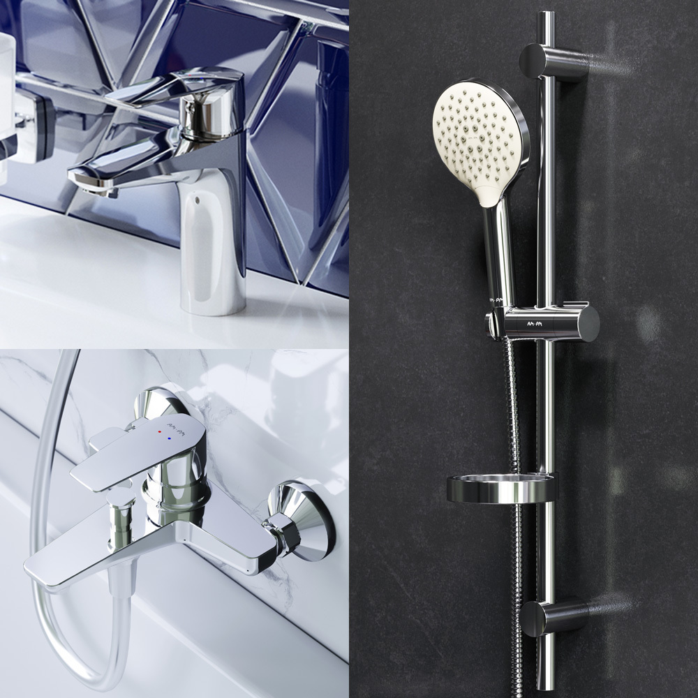 - Автоматический переключатель: ванна/ душ с возможностью механической фиксации при низком давлении воды