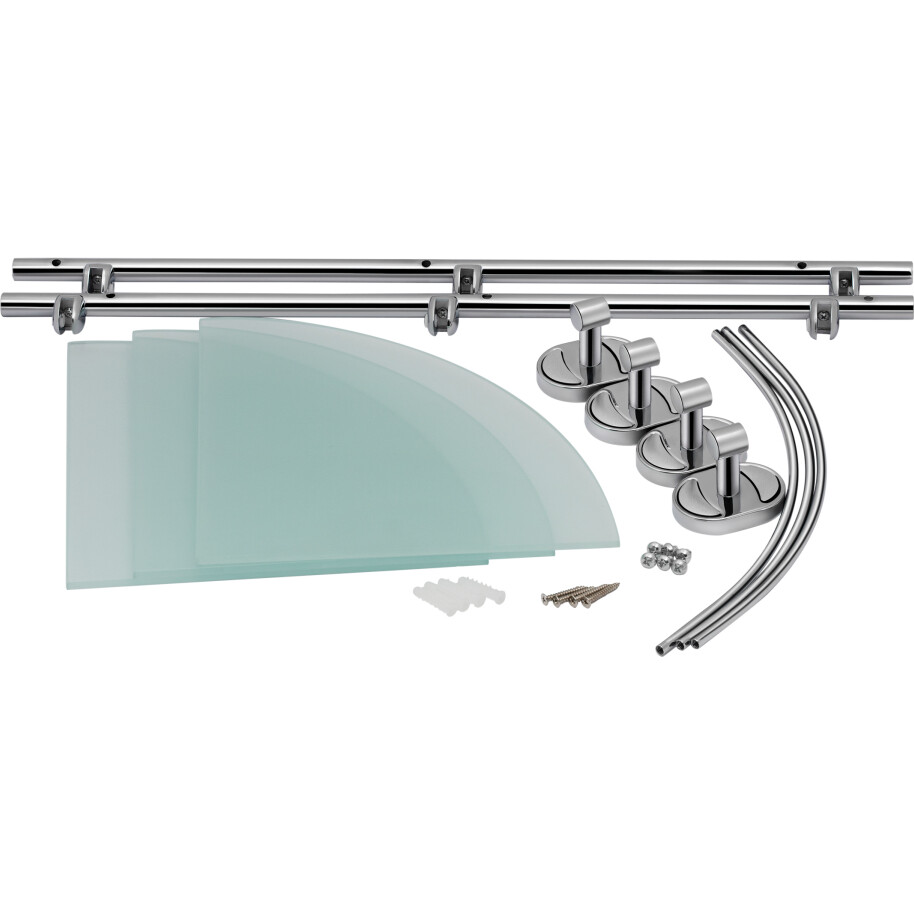 Угловая полка Lidz (CRG) 114.10.03 выполнена из матового стекла со штангами, фиксирующими держателями и бортиком из высококачественного металла с хромированным глянцевым покрытием. Полку можно расположить в душевой или над ванной для того, чтобы все ванные средства гигиены всегда были под рукой. А наличие трех ярусов позволит их компактно расположить.