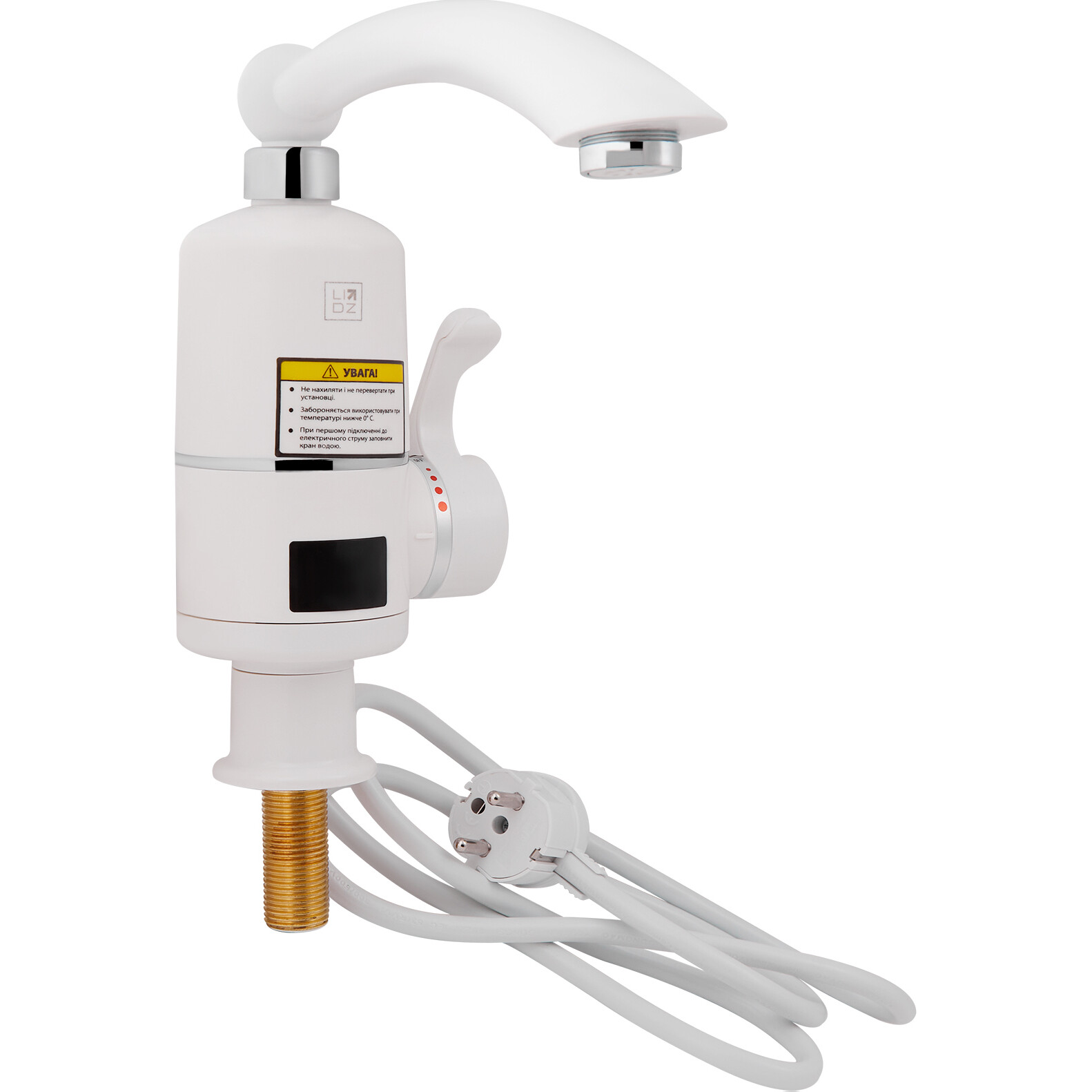 Кран для кухни проточный Lidz (WHI) 95 00 057 изготовлен из нержавеющей стали. Предназначен для быстрого нагрева проточной воды для бытовых целей. Подключается к магистрали холодного водоснабжения с помощью гибкого шланга диаметром 1/2" с давлением от 0.04 до 0.5 МПа и бытовой электрической сети 220 В, 50 Гц.