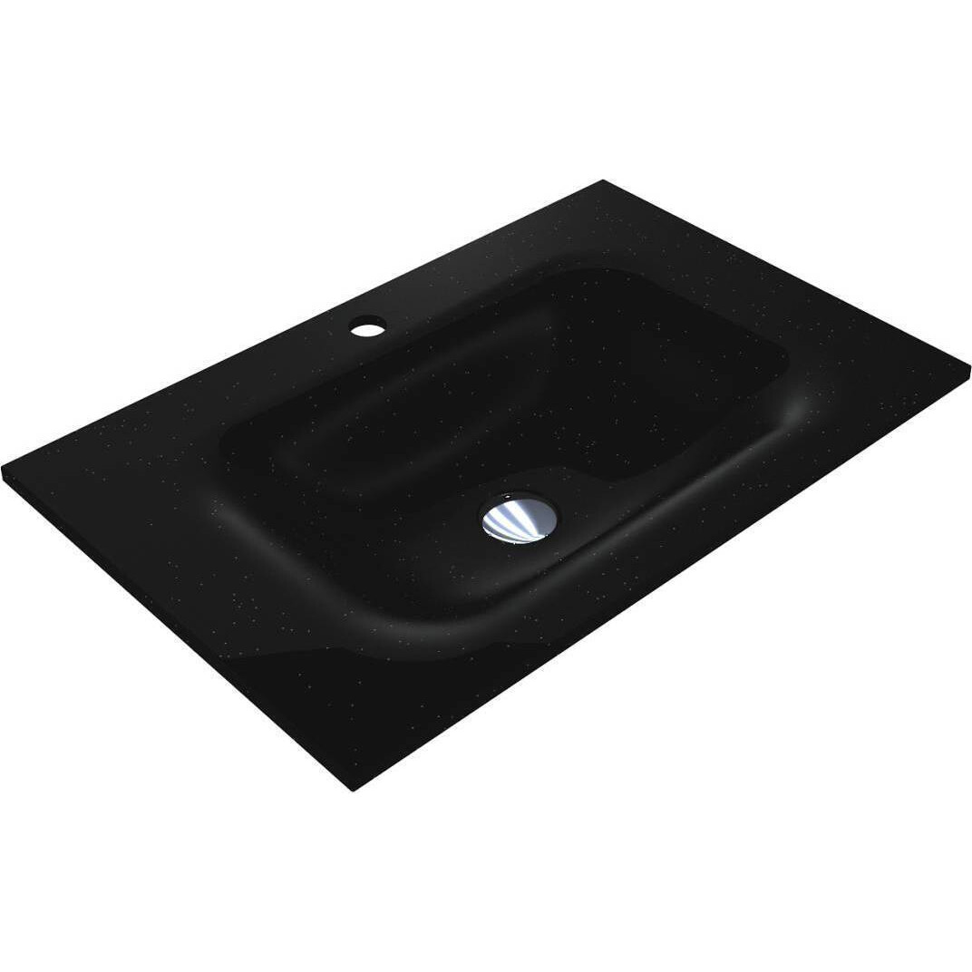 Мебельный черный умывальник JESSEL 700 – оптимальное решение для маленькой ванной комнаты. Компактное и удобное – на крыльях можно разместить косметические средства. Раковина имеет несколько типов монтажа – накладной и врезной.
