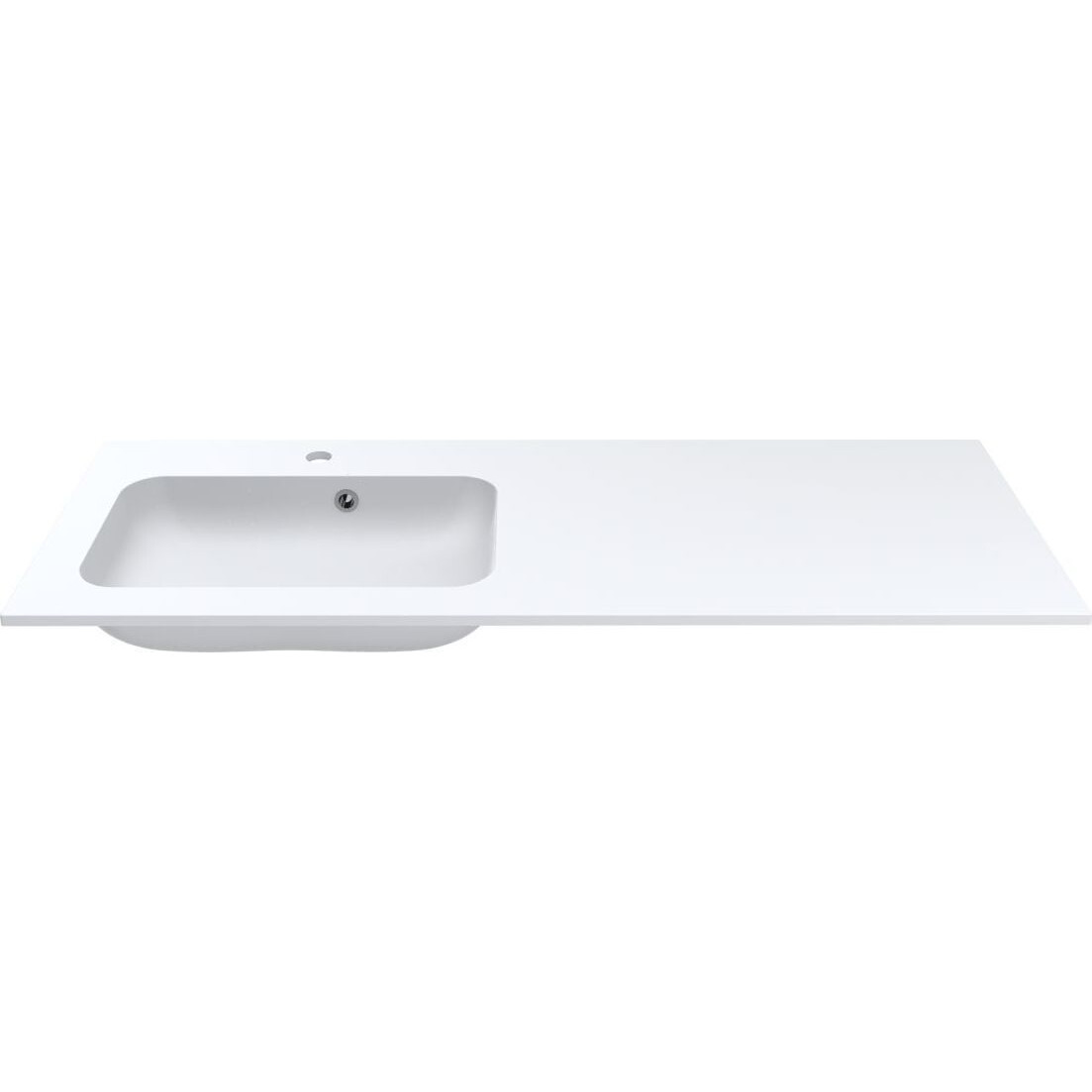 Умывальник с правым крылом DELLA 1200 L MIRASOFT – оригинальное и комфортное решение для ванной комнаты! Прямоугольная чаша смещена влево, что позволяет расположить под крылом стиральную машину или тумбу. Раковина имеет проем под смеситель и перелив. Умывальник может быть установлен накладным методом на тумбу или врезан в полку.