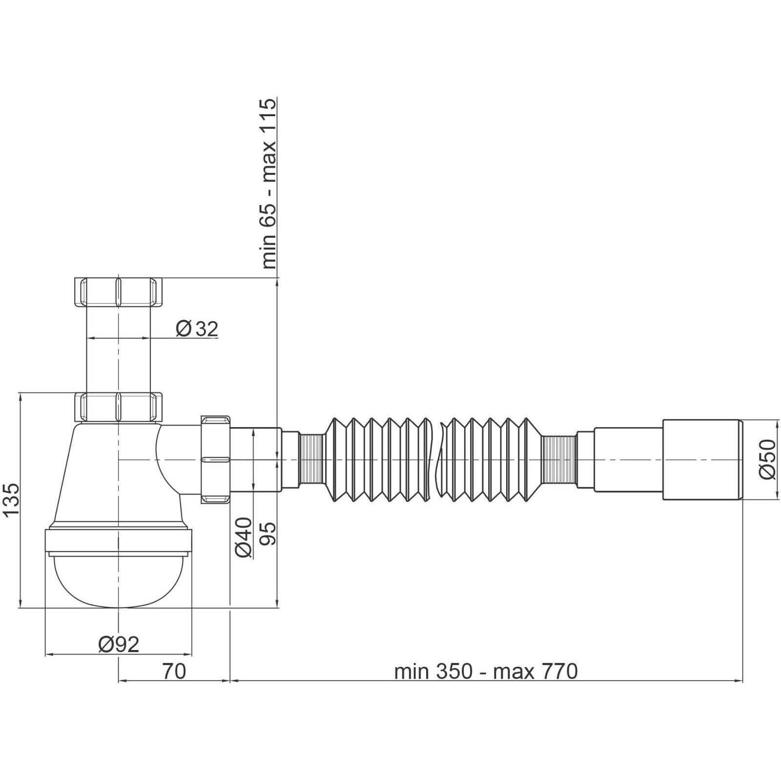 Сифон для раковины Lidz (WHI) 60 08 E003 00 имеет вид колбы изготовлен из пластика белого цвета. Изделие обладает гладкой внутренней поверхностью, что препятствует накоплению грязи на стенках. Резервуар колбы легко снимается, поэтому его очистка от осевших твердых частиц не составит больших хлопот. Гофрированный выход дает возможность изменять длину и угол трубы. Данный сифон поставляется без выпуска.