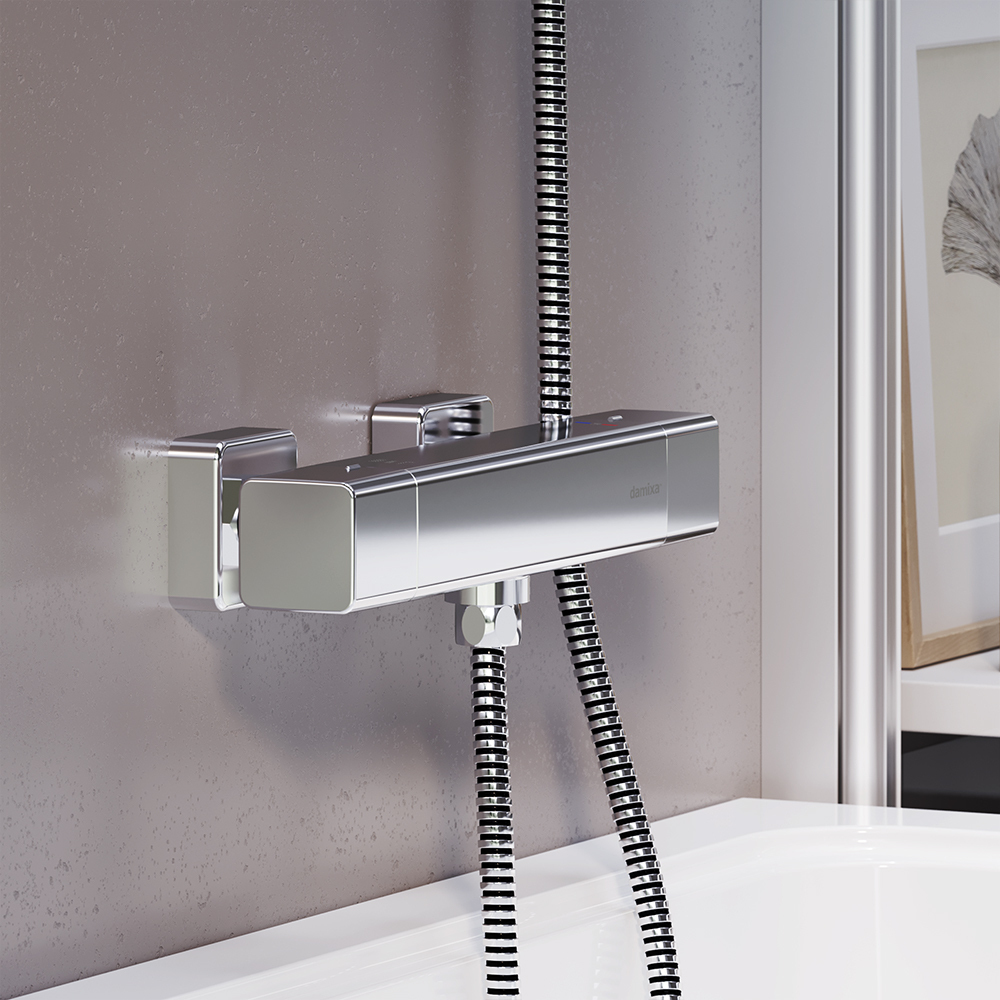 Термостатический смеситель для душа Gala идеально впишется в современную ванную комнату. Максимальная безопасность: термостатический картридж 35мм обеспечивает точную настройку температуры и напора воды. Специальная кнопка-предохранитель не позволяет случайно повысить температуру воды. Выставляйте комфортные для вас параметры легким поворотом правой ручки смесителя. Переключайте потоки воды между лейкой и верхним душем поворотом левой ручки смесителя. Инновационное покрытие High Gloss надежно защищает хромовую поверхность смесителя от мелких повреждений и сохраняет ювелирный блеск на долгие годы. Такой смеситель прослужит вам минимум 10 лет.