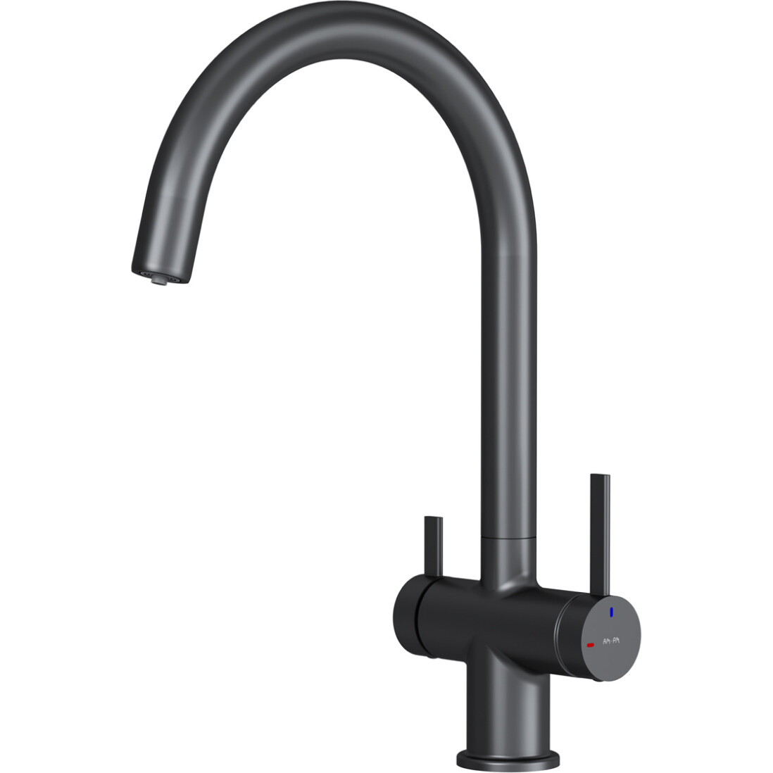 Смеситель оснащен встроенным каналом для питьевой воды. Чтобы получить питьевую воду, воспользуйтесь ручкой, расположенной с левой стороны корпуса; для обычной воды просто управляйте смесителем привычным способом.