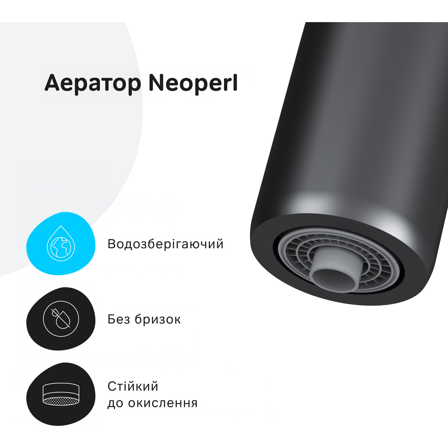 - Аэратор Neoperl использует водосберегающую технологию, смешивая водяной поток с воздухом, что предотвращает разбрызгивание воды