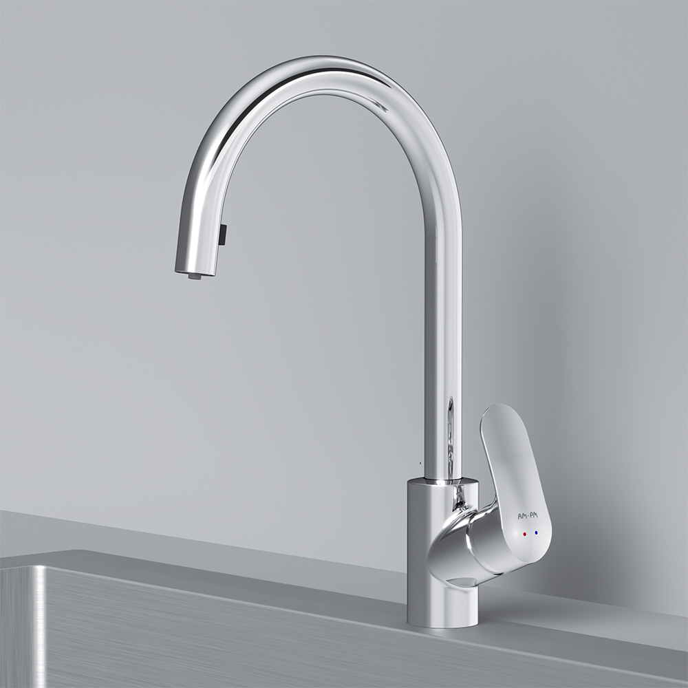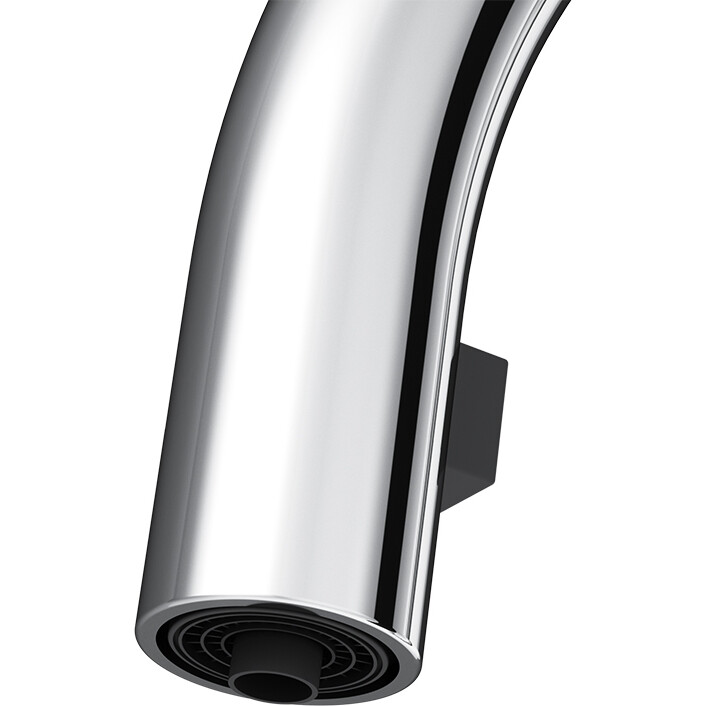 Максимальный комфорт: плавное вращение вытяжного излива в любом направлении обеспечивает непревзойденное удовольствие от использования и удобство в работе на кухне.