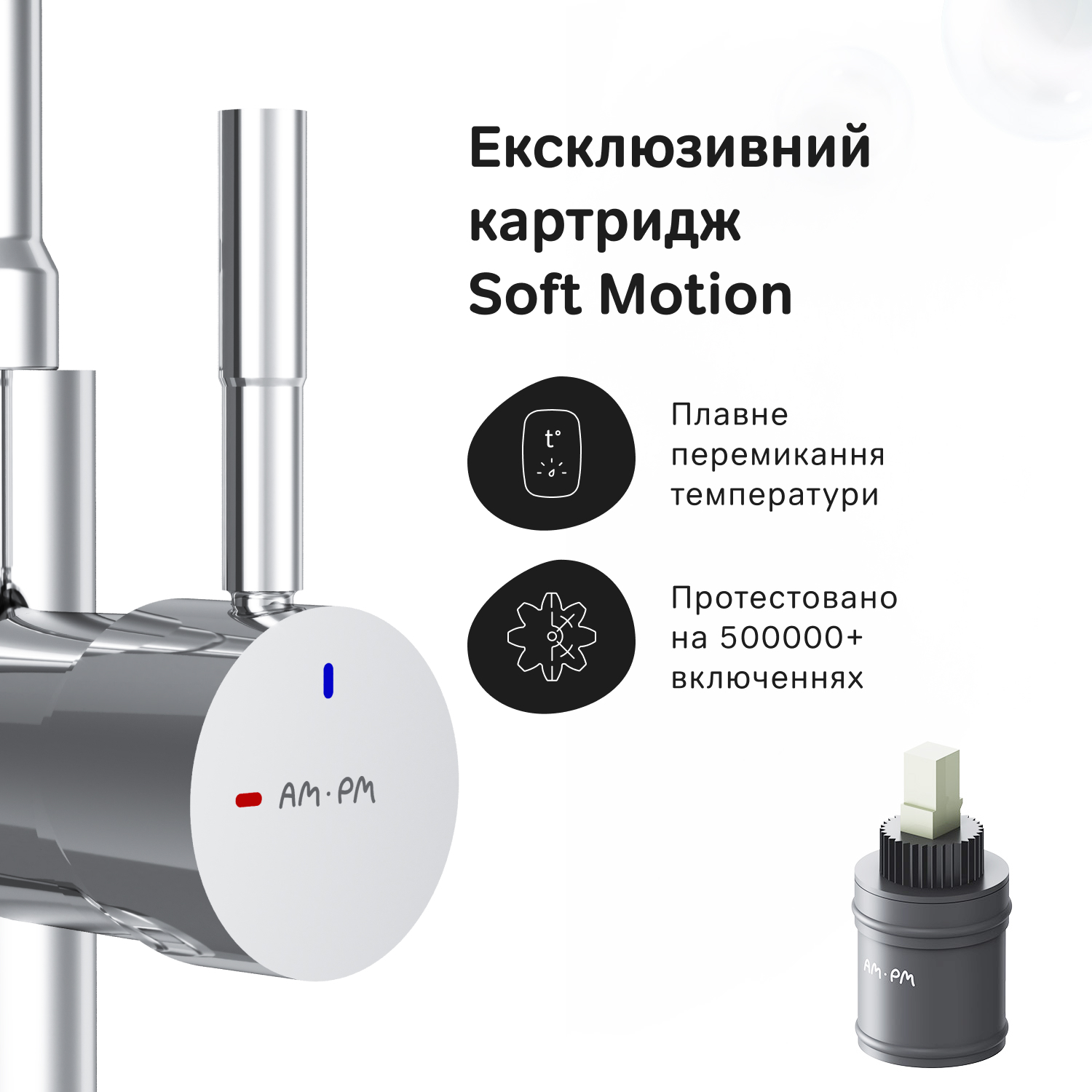 - Плавная работа: Керамический картридж SoftFlow устойчив к перепадам температуры и давления, обеспечивая стабильный поток воды