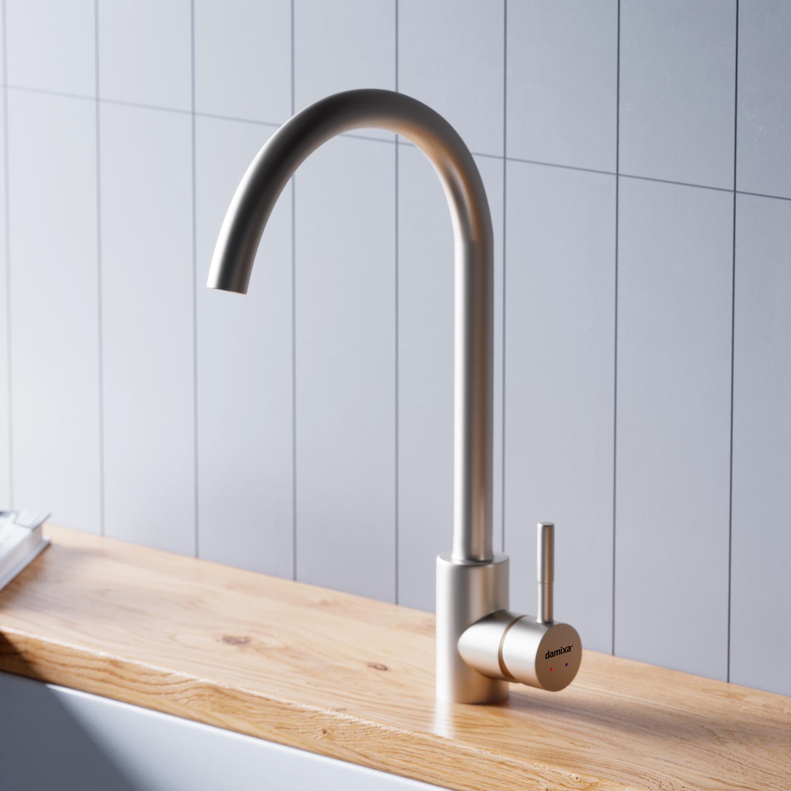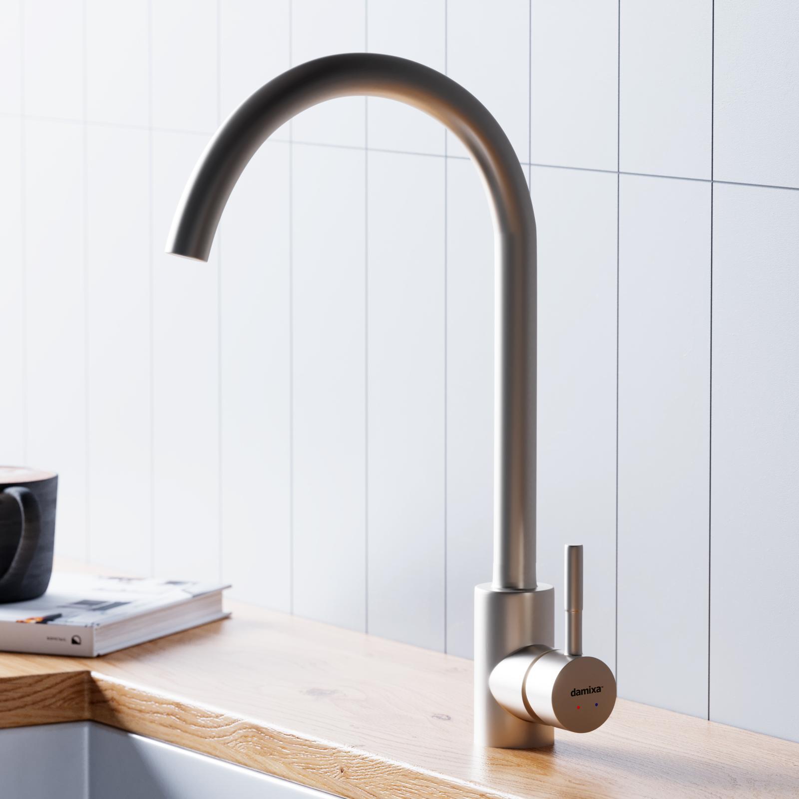 Високий, не заважає каструлям, плавний важіль перемикання, струмінь не б'є в тарілки, коли миєш посуд. Взяла ще такий самий батькам на кухню.ПреимуществаЗовнішній вигляд, якістьНедостаткиНе виявила поки