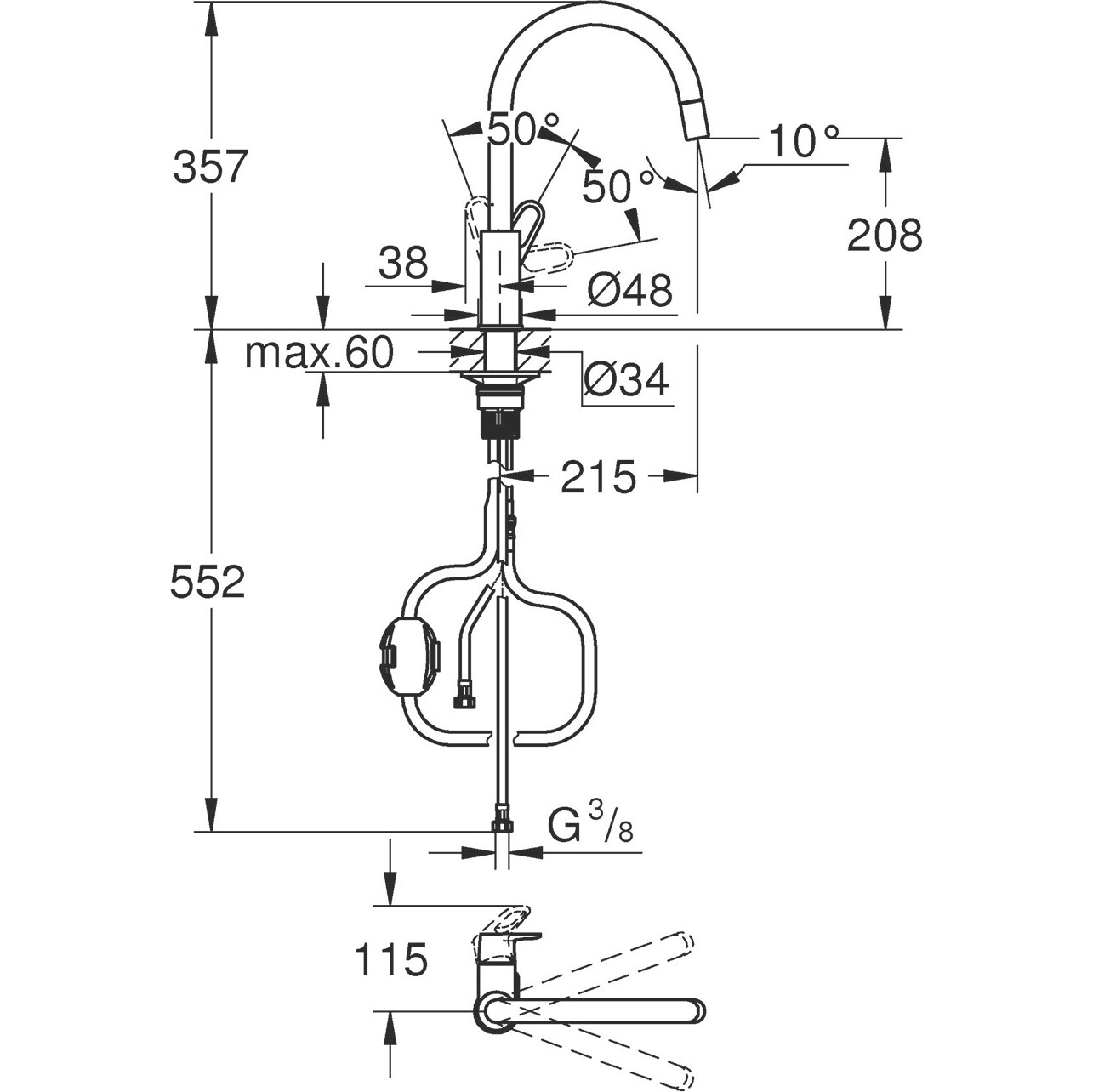 Смеситель Grohe Start Flow работает при минимальном давлении воды от 1,0 бар, что делает его надежным и удобным решением для вашей кухни.