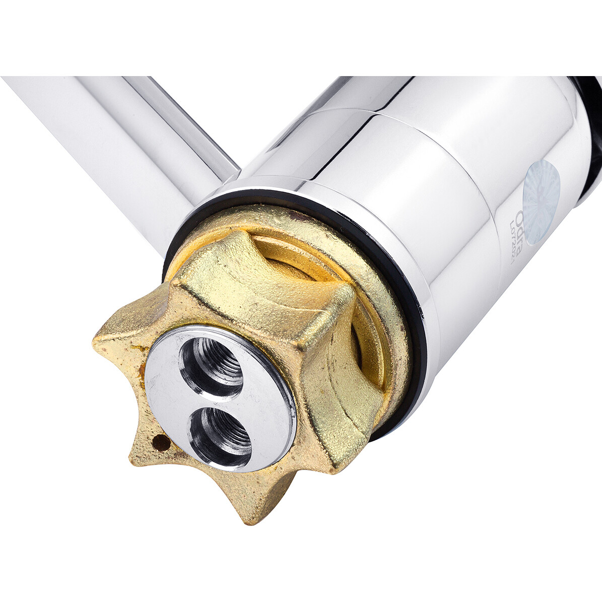 Смеситель для кухни Kroner KRM Odra - C030 – идеальный выбор для вашей кухни. Изготовлен из высококачественного силумина, гарантирует прочность и долговечность. Обладает привлекательным глянцевым хромированным цветом, что придает ему элегантность. Смеситель оснащен картриджным механизмом смешивания, позволяющим удобно регулировать температуру воды. Его уникальная V-образная форма излива обеспечивает удобство при наполнении посуды или мытья продуктов. Наслаждайтесь функциональностью и стилем смесителя Kroner.