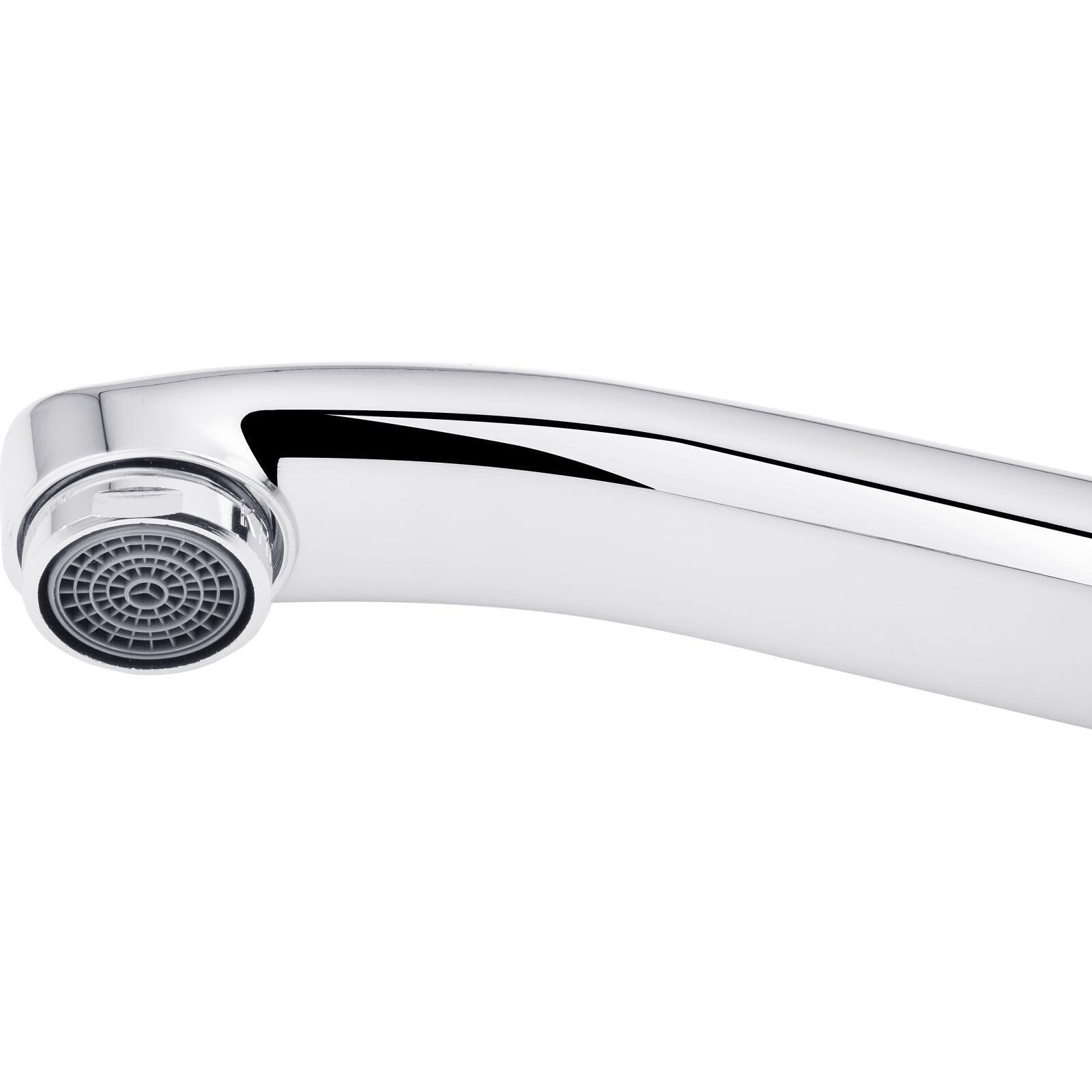 Смеситель для кухни Kroner KRP Konstante – C030 – идеальный выбор для вашей кухни. Изготовлен из высококачественной латуни, гарантирует прочность и долговечность. Обладает привлекательным глянцевым хромированным цветом, что придает ему элегантность. Смеситель оснащен картриджным механизмом смешивания, позволяющим удобно регулировать температуру воды. Его уникальная V-образная форма излива обеспечивает удобство при наполнении посуды или мытья продуктов. Наслаждайтесь функциональностью и стилем смесителя Kroner.