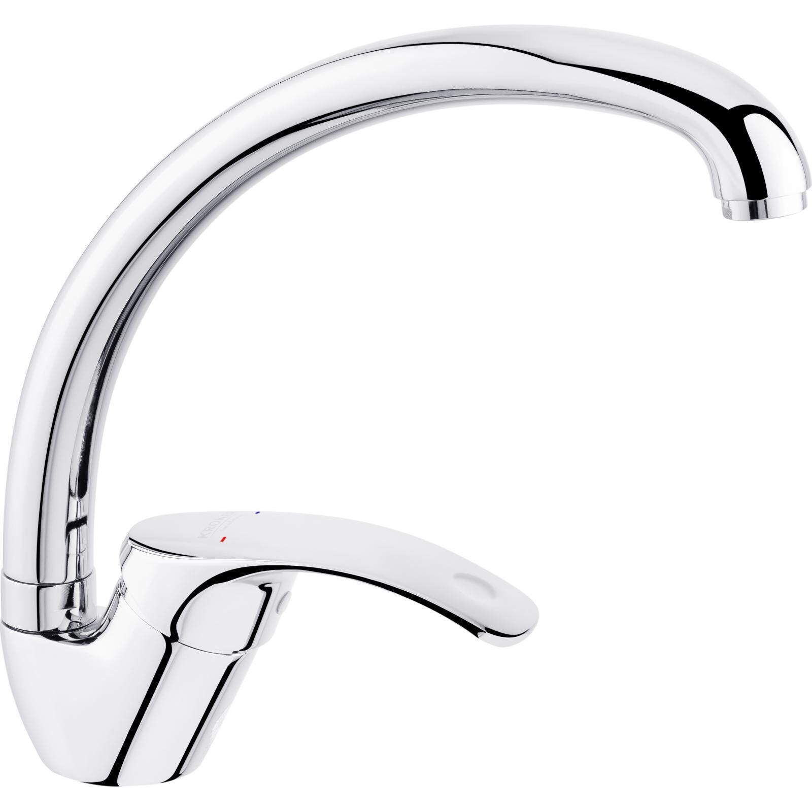 Смеситель для кухни Kroner KRP Konstante – C032 – идеальный выбор для вашей кухни. Изготовлен из высококачественной латуни, гарантирует прочность и долговечность. Обладает привлекательным глянцевым хромированным цветом, что придает ему элегантность. Смеситель оснащен картриджным механизмом смешивания, позволяющим удобно регулировать температуру воды. Его уникальная С-образная форма излива обеспечивает удобство при наполнении посуды или мытья продуктов. Наслаждайтесь функциональностью и стилем смесителя Kroner.