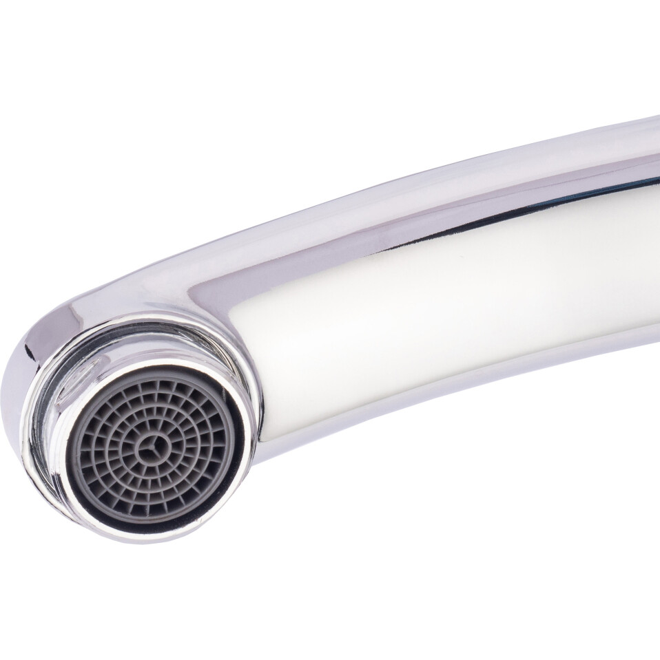 Смеситель для кухни Lidz (CRM) Mars 81 003 00 изготовлен из латуни. Благодаря глянцевой хромированной поверхности имеет оригинальный внешний вид. Выполнен в классическом стиле, с удобной ручкой для переключения холодной и горячей воды. Такой смеситель не только удобен в использовании, но и идеально впишется в интерьер кухни.
