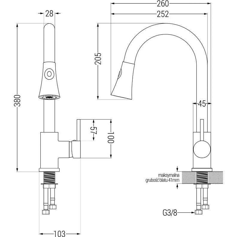 Простой и функциональный смеситель с выдвижным изливом. Изготовлен из качественной латуни. Благодаря современному дизайну - станет украшение вашей кухни. Установить можно, как на столешницу, так и непосредственно в мойку.