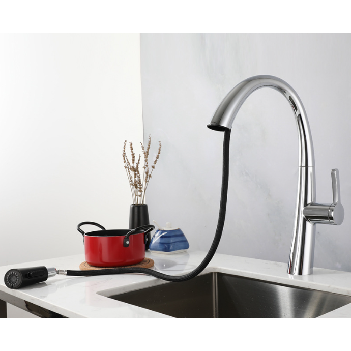 Основным преимуществом является выдвижная лейка, которая обеспечивает дополнительную мобильность и удобство при мытье посуды или наборе воды в большие емкости. Поворотный излив позволяет легко направлять поток воды в нужном направлении, что делает его чрезвычайно функциональным для любых задач. Изготовленный из качественной латуни и хромированным покрытием, он устойчив к коррозии и имеет длительный срок службы.