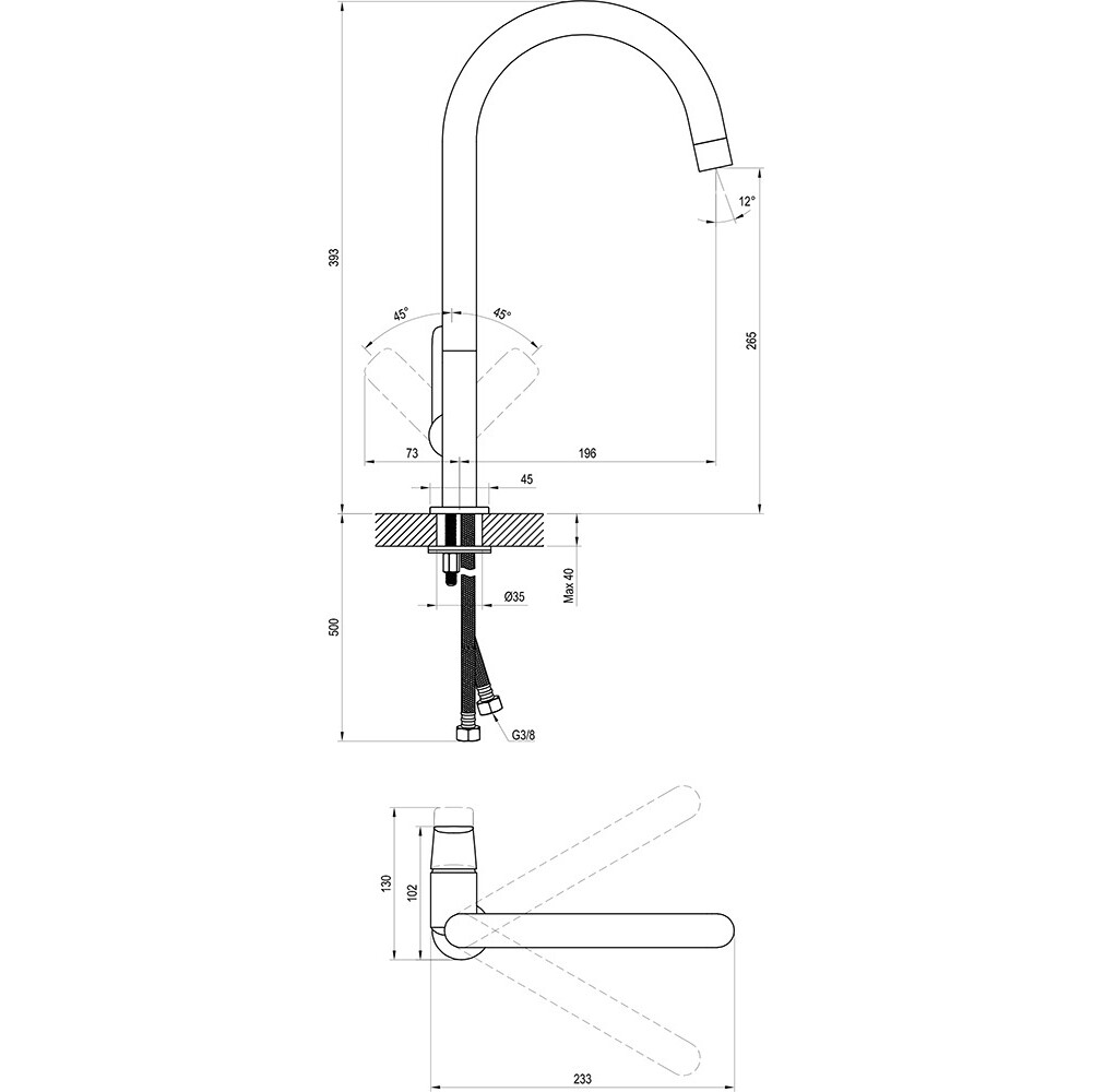 - соединительные шланги: гибкие 400 мм, диаметр G3/8