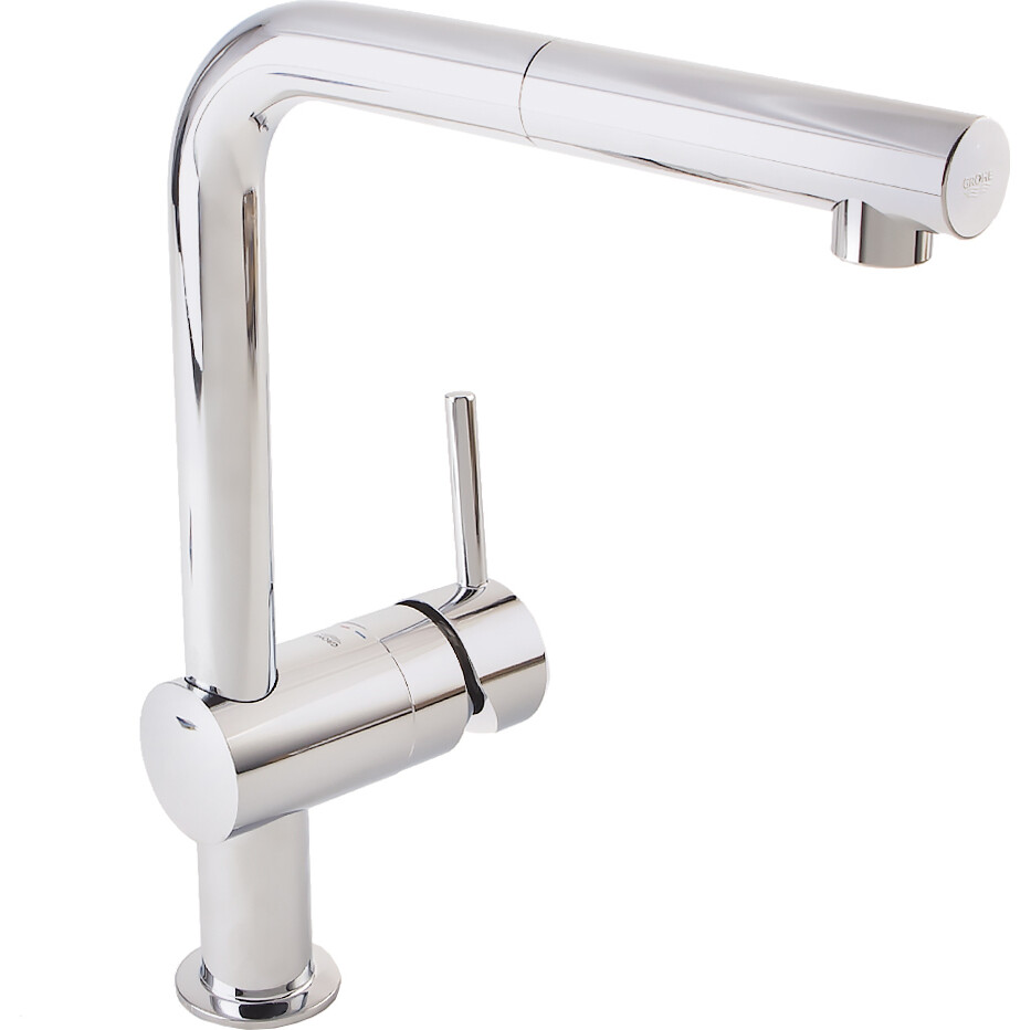 Смеситель выдвижной для кухни Grohe Minta 32168000 предназначен для кухонной раковины и представляет собой корпус с изливом, имеющий управляющий элемент в виде рычага, позволяющего "запоминать" температуру воды, использовавшуюся перед этим.