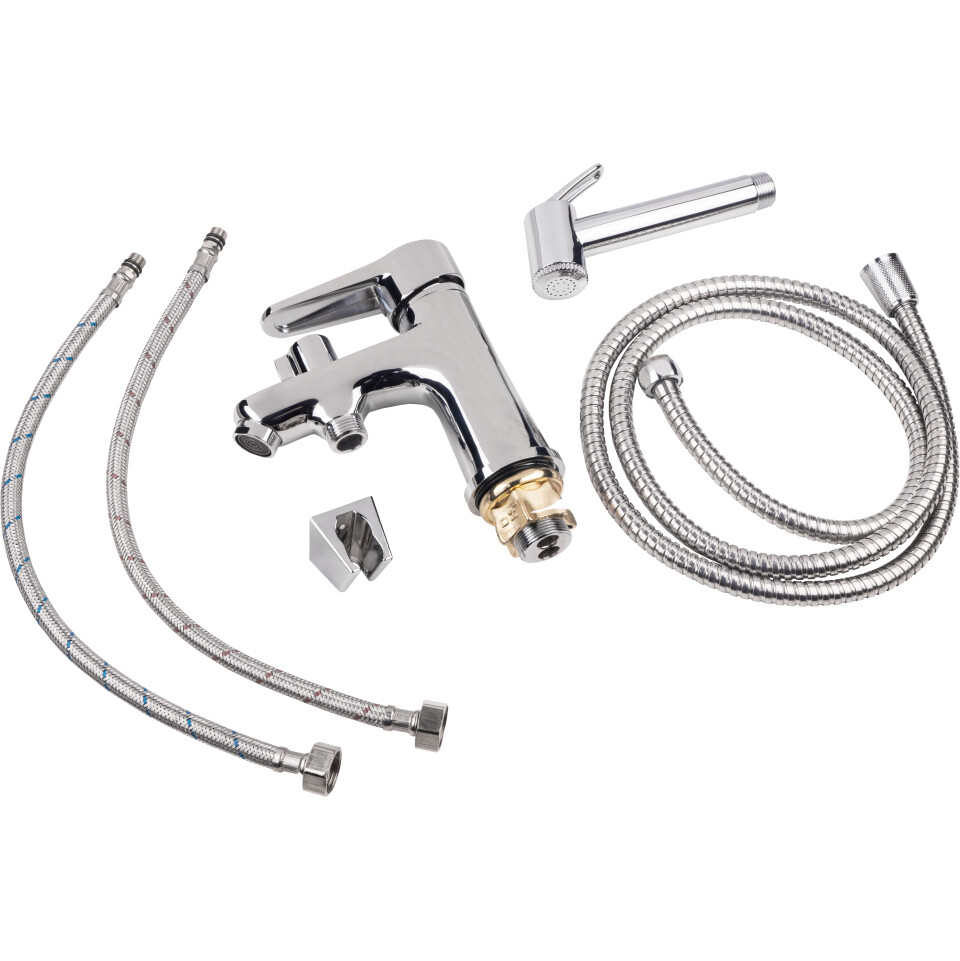 Смеситель для раковины с лейкой Lidz (CRM) 14 34 001FB изготовлен из цинка. Глянцевая хромированная поверхность придает не только долговечность смесителю, но и привлекательный внешний вид. Он монтируется в отверстие для смесителя на пристенном бортике умывальника или на столешнице. Напор и температура воды регулируются поворотом рычага. Подключение воды происходит через гибкие шланги, которые входят в комплект поставки. Выполнен в современном стиле и удобен в использовании.