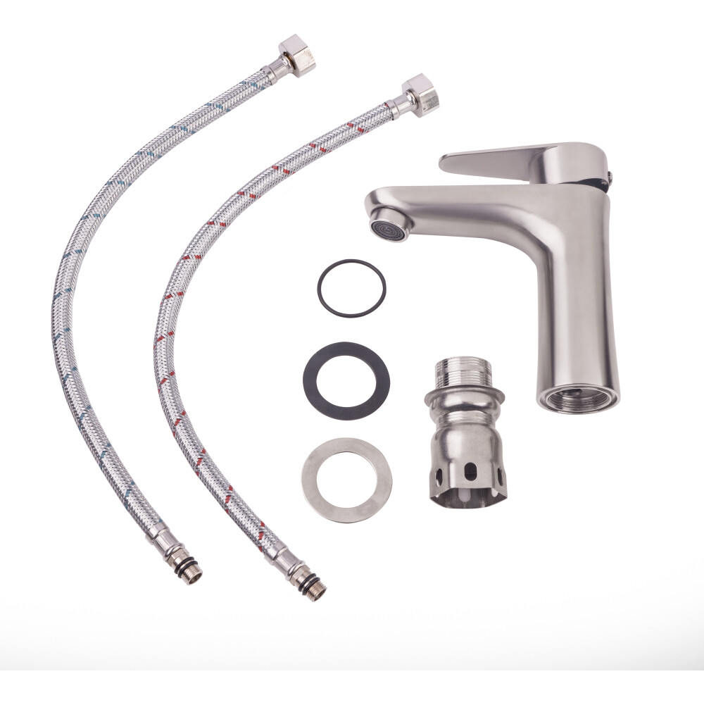 Смеситель для раковины Lidz (NKS) 09 35 001F выполнен из нержавеющей стали. Он монтируется в отверстие для смесителя на раковине или на столешнице врезным способом. Напор воды и ее температура регулируются поворотом рычага в необходимое положение. Рычаг имеет нанесенные маркировку Х+Г воды и фирменный логотип производителя.