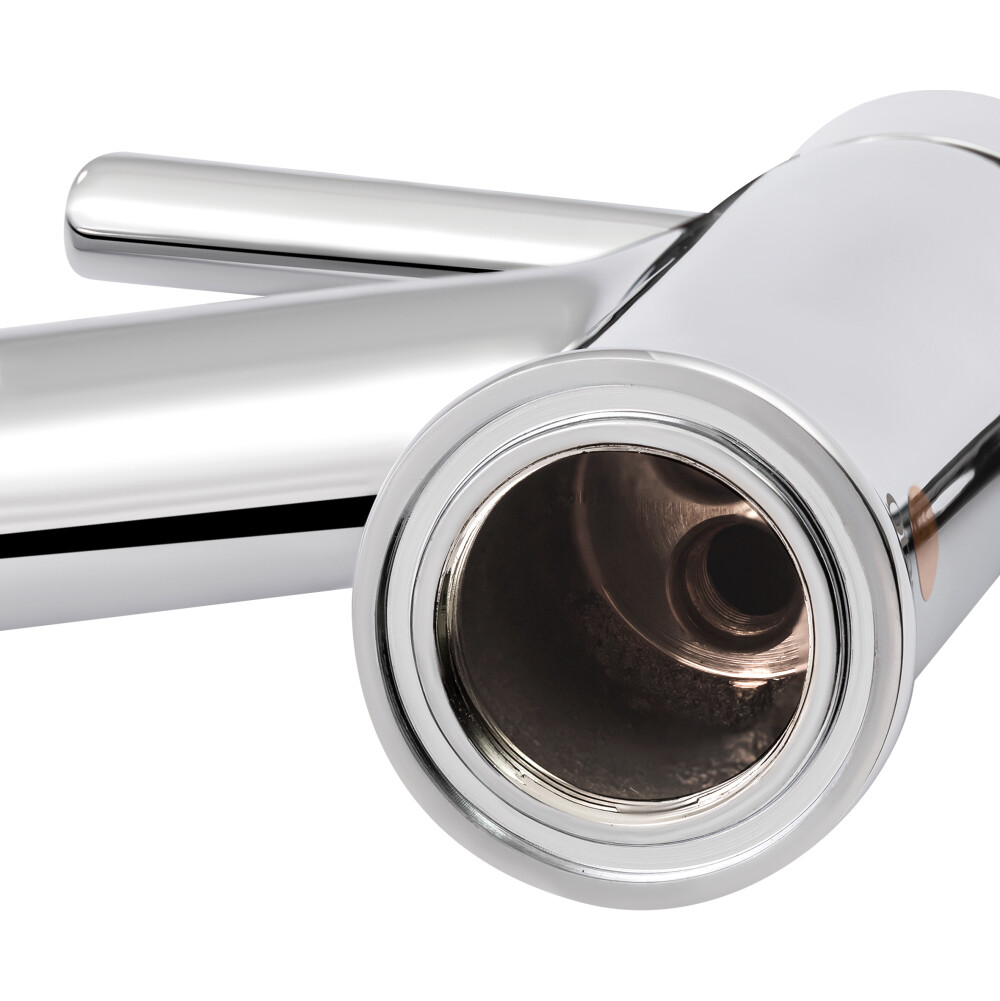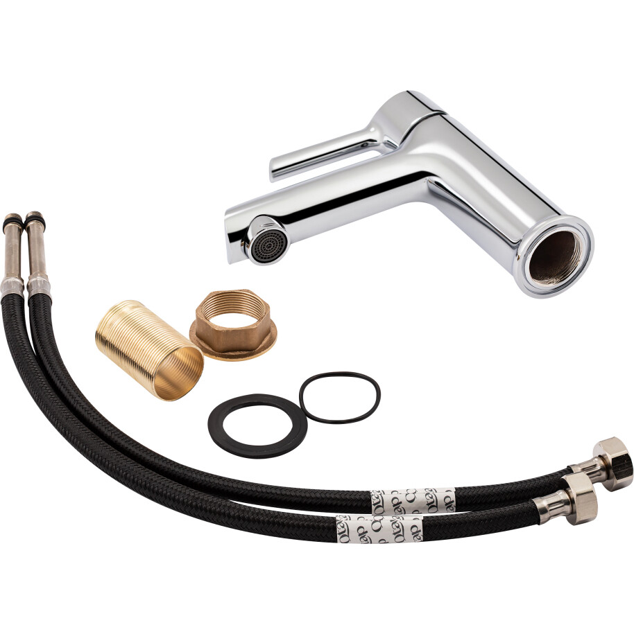 Смеситель для раковины Qtap Grand CRM 001F изготовлен из высококачественной пищевой латуни, которая не подвержена коррозии, устойчива к ударам и появлению трещин. Глянцевое хромированное покрытие не только повышает долговечность смесителя, но и придает ему оригинальный внешний вид. Интенсивность водного потока и температура регулируются с помощью перемещения рычага. Подключение воды происходит через гибкие шланги с диаметром подключения 1/2".