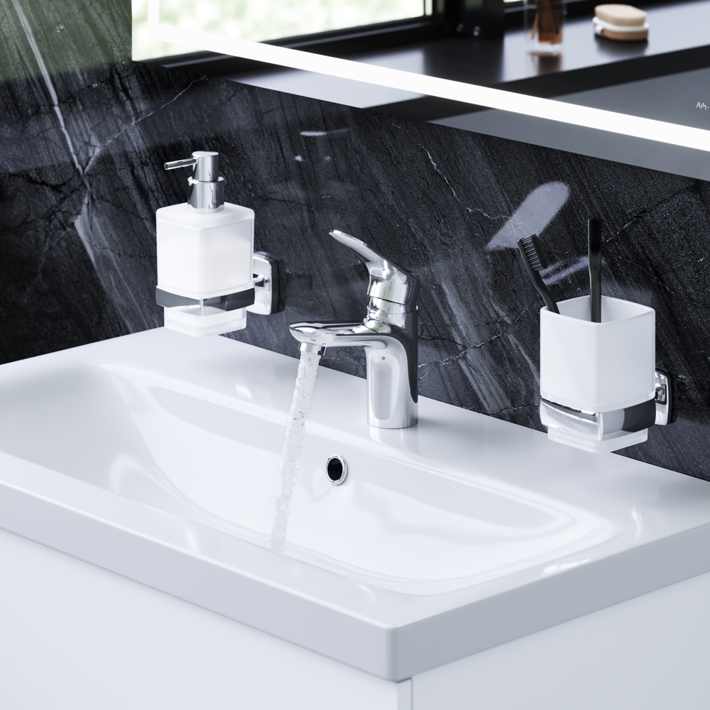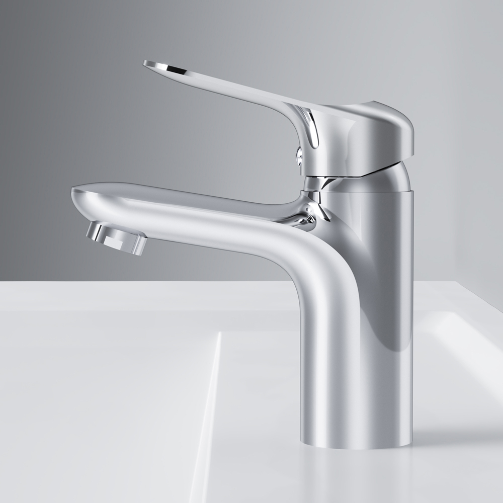 Исключительный дизайн, к которому хочется прикоснуться от всемирноизвестного агенства Brandis, Германия. Идеальная геометрия, разработанная по стандарту SA (Smart Angle) – математически выверенное соотношение высоты смесителя, длины излива и наклона корпуса для удобного использования на раковине размером от 50 до 120 см.