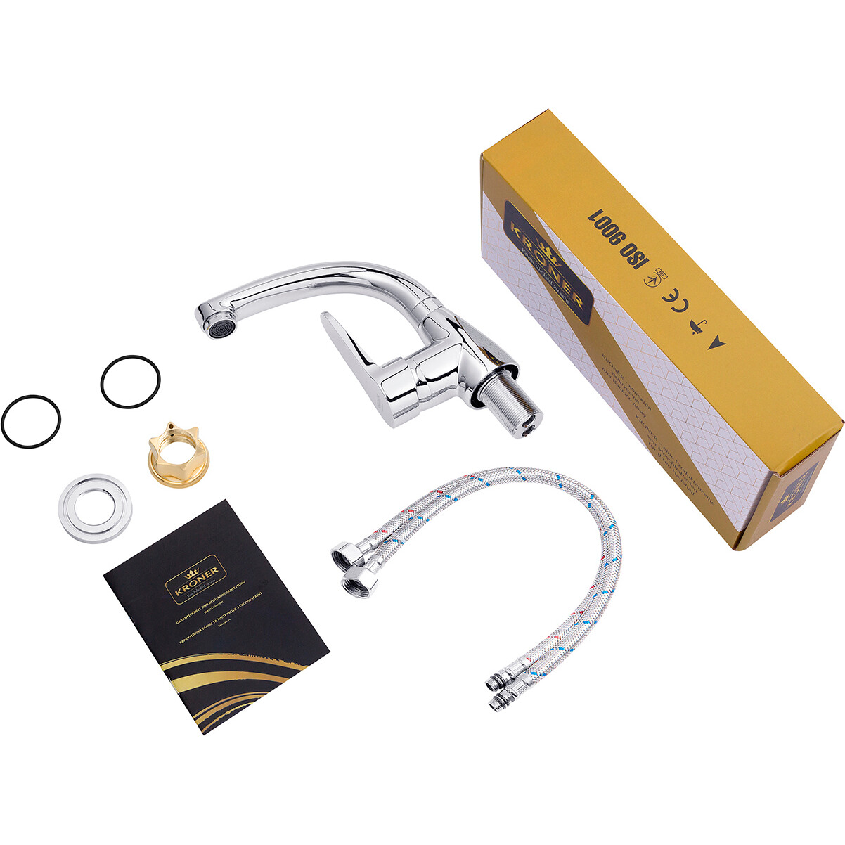 Смеситель для раковины Kroner KRM Elbe – C031 – идеальный выбор для вашей ванной комнаты. Изготовлен из высококачественного силумина, гарантирует прочность и долговечность. Обладает привлекательным глянцевым хромированным цветом, что придает ему элегантность. Смеситель оснащен картриджным механизмом смешивания, позволяющим удобно регулировать температуру воды. Наслаждайтесь комфортом и удобством использования вместе с Kroner.
