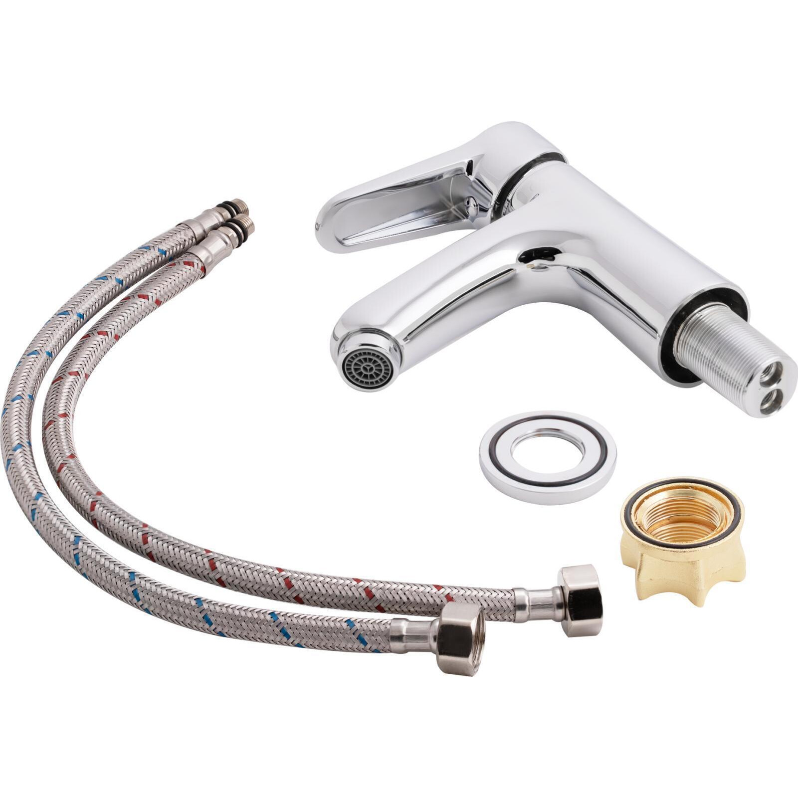 Смеситель для раковины Lidz (CRM) 14 34 001F изготовлен из цинка. Глянцевая хромированная поверхность придает смесителю оригинальный внешний вид. Интенсивность водного потока и температура регулируются с помощью перемещения рычага. Подключение воды происходит через гибкие шланги с диаметром подключения 1/2", которые входят в комплект поставки.