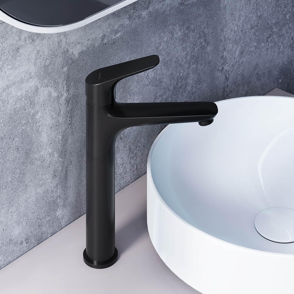 Новый формат: смеситель с высоким изливом идеально впишется в современный интерьер ванной комнаты с глубокой чашей, а глубокий черный цвет смесителя придаст особый шарм вашей раковине. Идеальное управление: керамический картридж Light Flow обеспечивает плавное управление ручкой смесителя и оптимальную регулировку температуры и мощности потока.