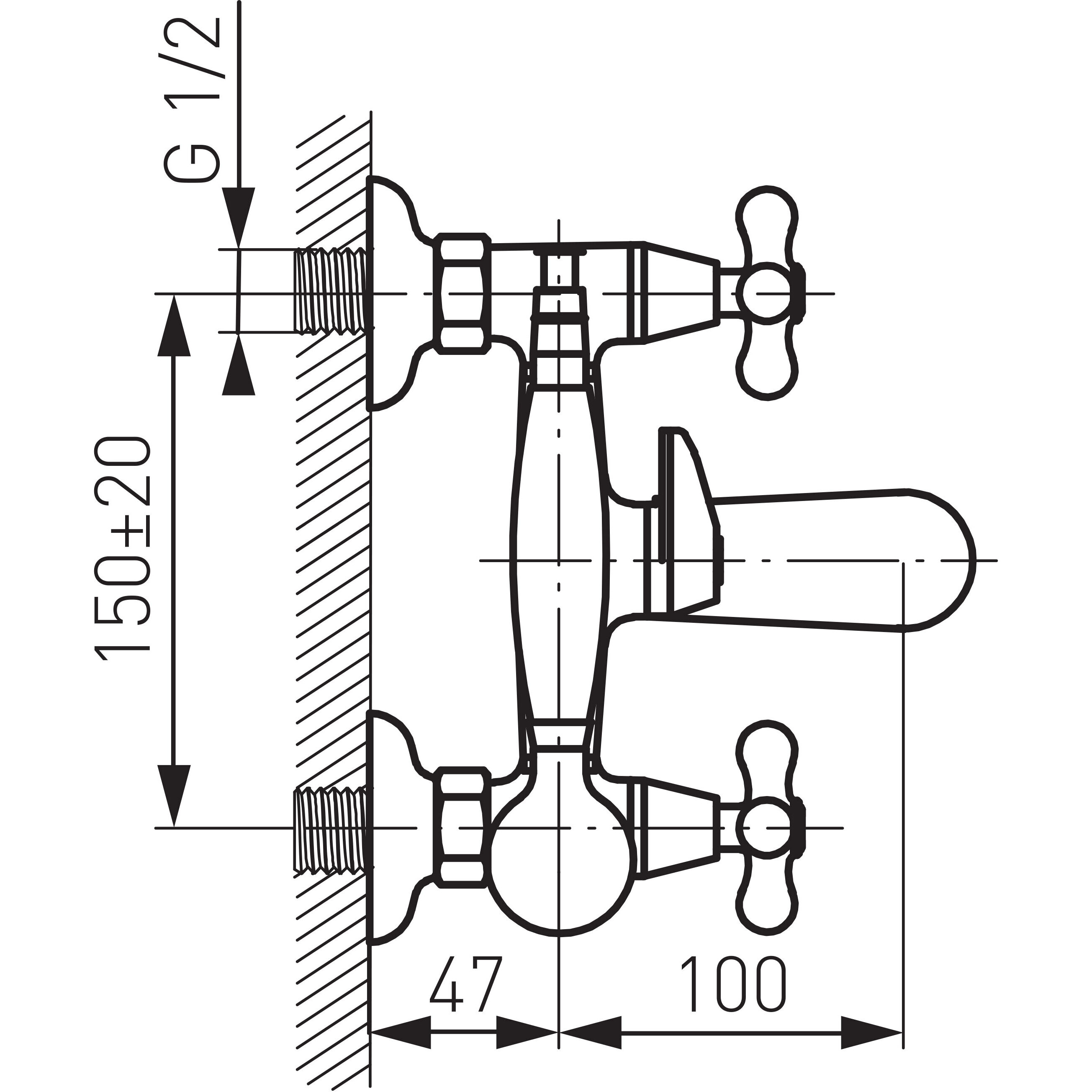 - эксцентрический подвод G1/2 межцентровое расстояние 150 ± 20 мм