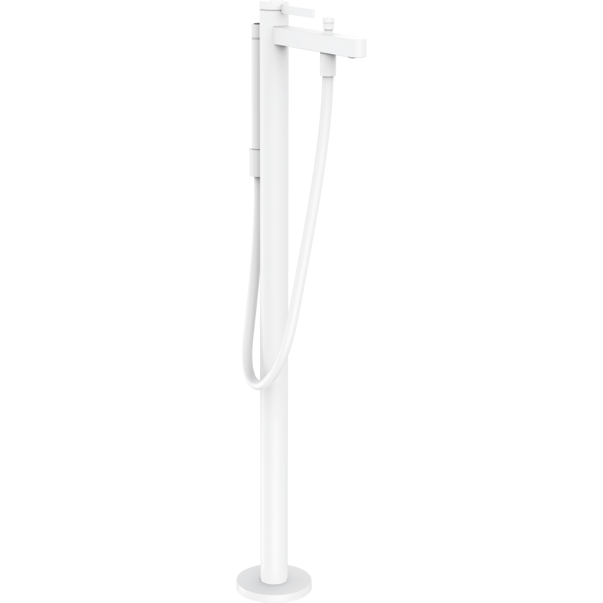 - состоит из: смеситель для ванны напольный, ручной душ-«палочка», шланг для душа, держатель для душа