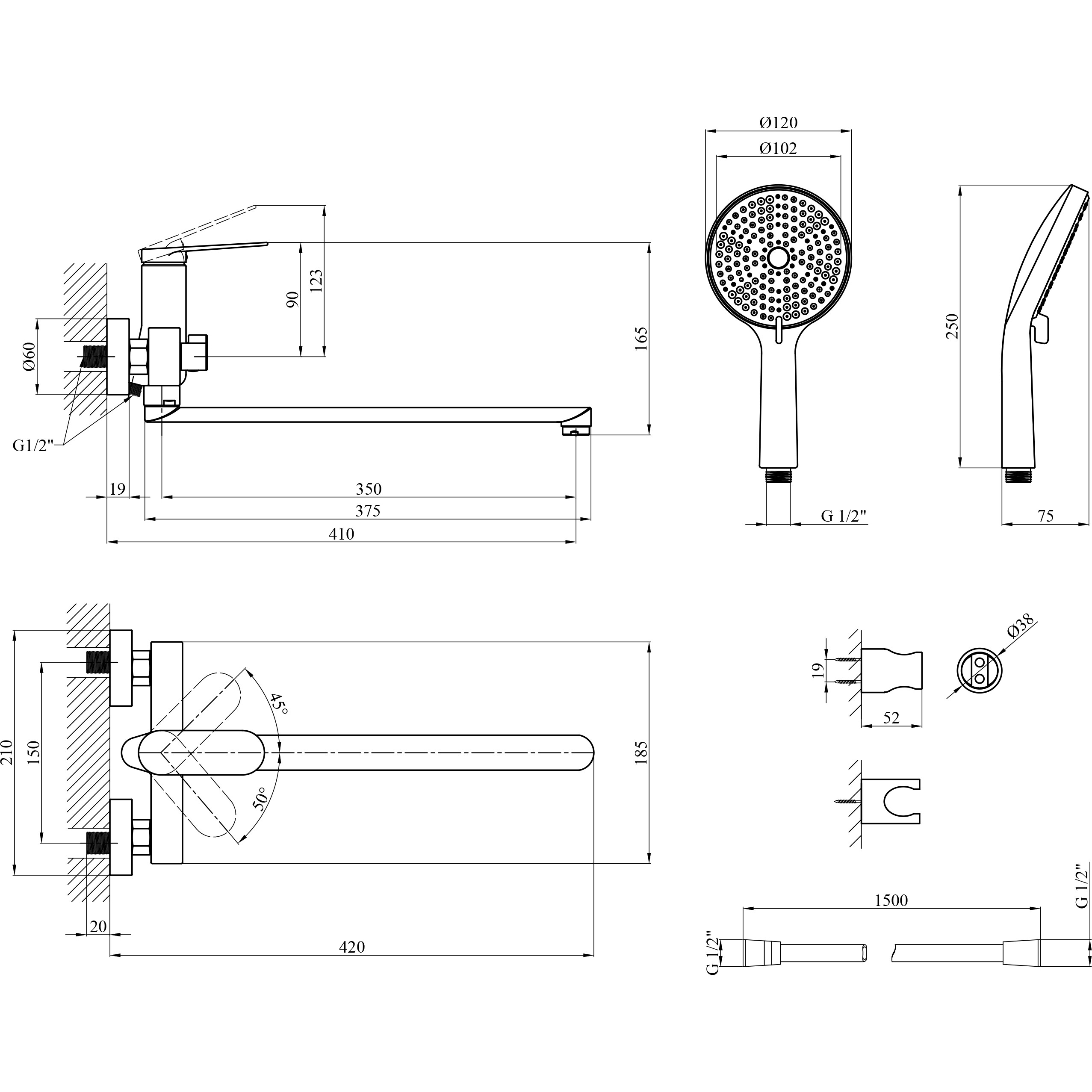 Длинный излив обеспечивает удобство при наполнении ванны, а душевая лейка с тремя режимами подачи воды позволяет выбрать оптимальный поток — от мягкого расслабляющего до более интенсивного. Плавный ход рычага обеспечивает точную регулировку температуры и напора воды, создавая комфорт при каждом использовании.