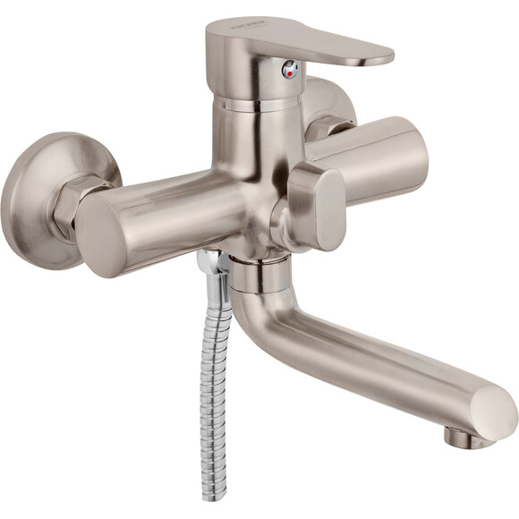 Смеситель для ванной Kroner KRM Elbe - N060 – идеальный выбор для обеспечения комфорта и элегантности в вашей ванной комнате. Настенный монтаж придает ему стильность и легкость в использовании. Выполненный в цвете никель, он выглядит изысканно, а брашированная поверхность придает смесителю элегантность. Изготовлен из высококачественного силумина, обеспечивает надежность и долговечность. Механизм смешивания на основе картриджа позволяет легко регулировать температуру воды. Круглая форма лейки завершает стильный дизайн. Улучшите свой ванный опыт со смесителем для ванны Kroner.