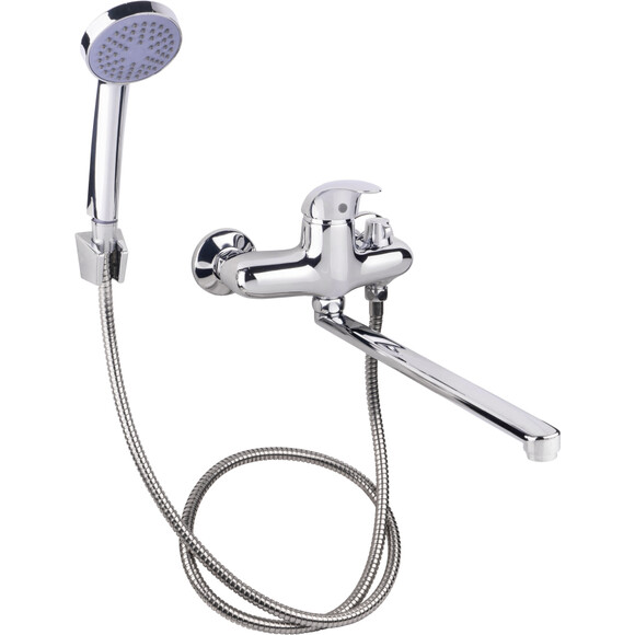 Смеситель для ванны Lidz (CRM) 43 79 001 New с длинным поворотным изливом изготовлен из цинка, укомплектован кронштейном для ручного душа, душевым шлангом и лейкой. Благодаря хромированному покрытию имеет прочную поверхность и привлекательный внешний вид. Декоративные розетки скроют погрешности установки на отделке комнаты. Напор воды и ее температура регулируются поворотом рычага в необходимое положение. Переключение ванна/душ осуществляется при помощи дивертора.