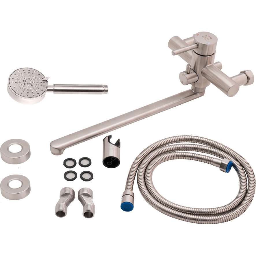 Смеситель для ванны Lidz (NKS) 12 32 005-1 выполнен из нержавеющей стали, что гарантирует длительный срок эксплуатации. Для включения подачи воды достаточно поднять рычаг и повернуть его в необходимую сторону. Смеситель монтируется на стену над ванной с помощью крепежных элементов, которые входят в комплект. Круглые розетки скроют погрешности установки на отделке. Держатель лейки крепится также на стену. Таким образом, ваши руки будут свободны во время принятия душа.