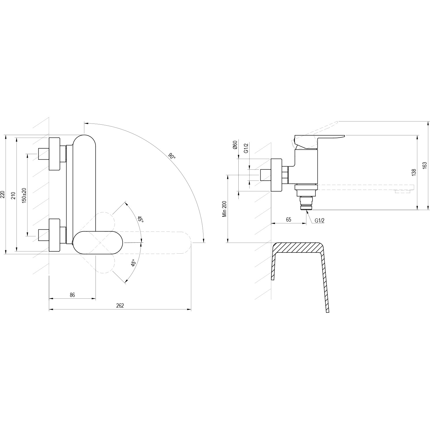 Оригинальный смеситель для ванны имеет излияние, которое можно повернуть к стене, поэтому он не занимает лишнего места в ванной комнате. В этом положении душ будет протекать при включении воды. В классическом положении вода из смесителя для ванной течет в сторону ванны.