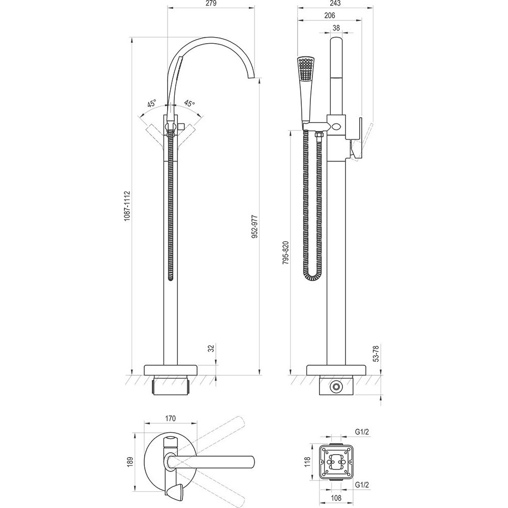Подключение воды к R-box осуществляется перпендикулярно ванне. Базовый блок RB 07A.50 не является частью FM 080.00CR. RB07Напольный смеситель и приобретается отдельно. R-box включает в себя материал для крепления к полу, не включает в себя соединения для водоснабжения или другого сантехнического материала. Для наружной чистки мы рекомендуем использовать средство Ravak Cleaner Chrome.