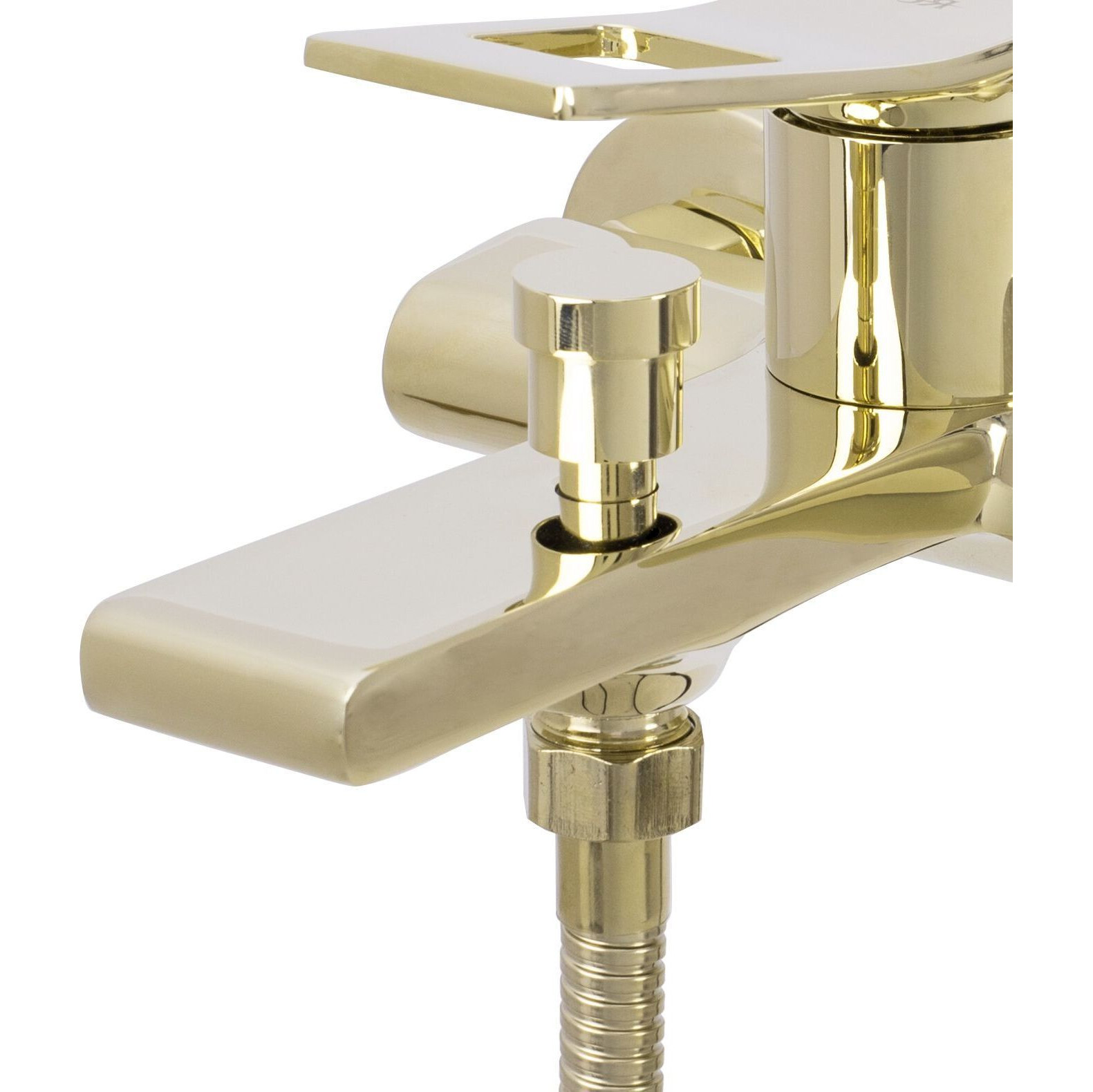 Представляем вам красивый, чрезвычайно функциональный и современный смеситель для ванны. Это продукт, который идеально заполнит пространство вашей ванной комнаты, сохранив при этом безупречный внешний вид и эстетику интерьера. Аккумулятор предназначен для настенного монтажа. Он был изготовлен из латуни, покрытой тройным слоем золота. Благодаря специальной производственной фазе он долговечен и легко моется.