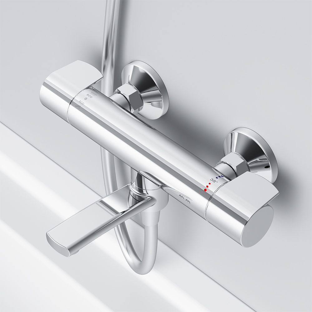 Термостатический картридж с высокочувствительным термоэлементом и быстрой реакцией на изменения температуры или давления надежно защищает от ожога даже при внезапном отключении холодной воды.