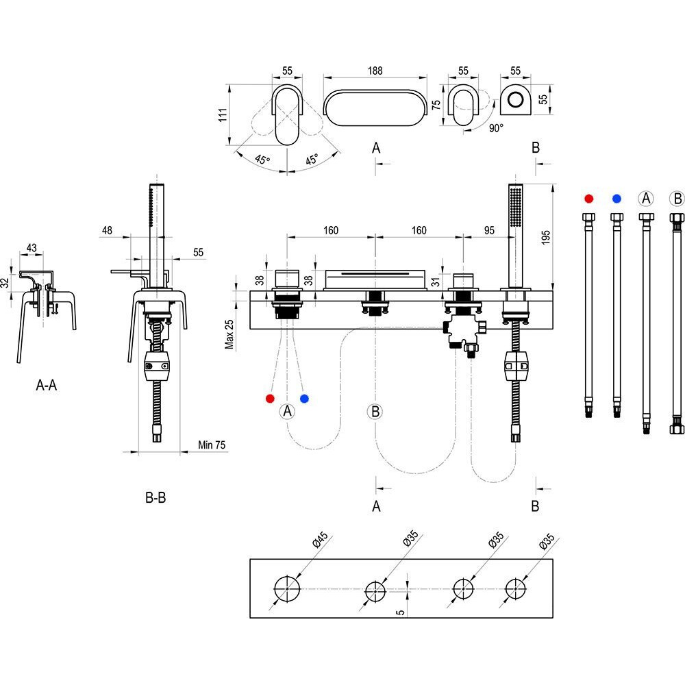 Изделие не включает автоматическую катушку для шланга и систему под полом для слива поступающей воды. В случае установки изделий обеспечите доступ к смесителям в будущем для возможности их обслуживания.